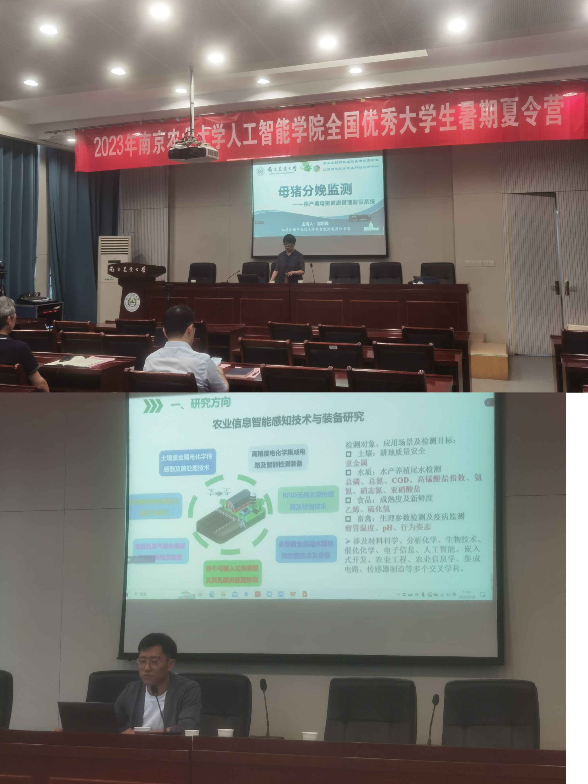 有着数十年的办学历史和文化积淀,着力农业行业优势和领域特色人才培养,推动“泛AI+”农业及生命科学领域的学科交叉融合,致力于建设具有世界影响、国内同类院校一流的人工智能学科群。他鼓励营员们来到南农,一起展望未来,感受人工智能作为新一轮科技革命和产业革命的核心驱动力,一起见证人工智能对全球经济及社会发展产生的举足轻重的影响。在学术报告环节,学院七位导师代表分别为营员们作了学术报告,向营员们展示了学院目前的科研发展动态。整个学术报告过程用时近3个小时,此次学术报告激发了营员们学术思想的交流碰撞,加强了其对本领域学科前沿进展的了解。