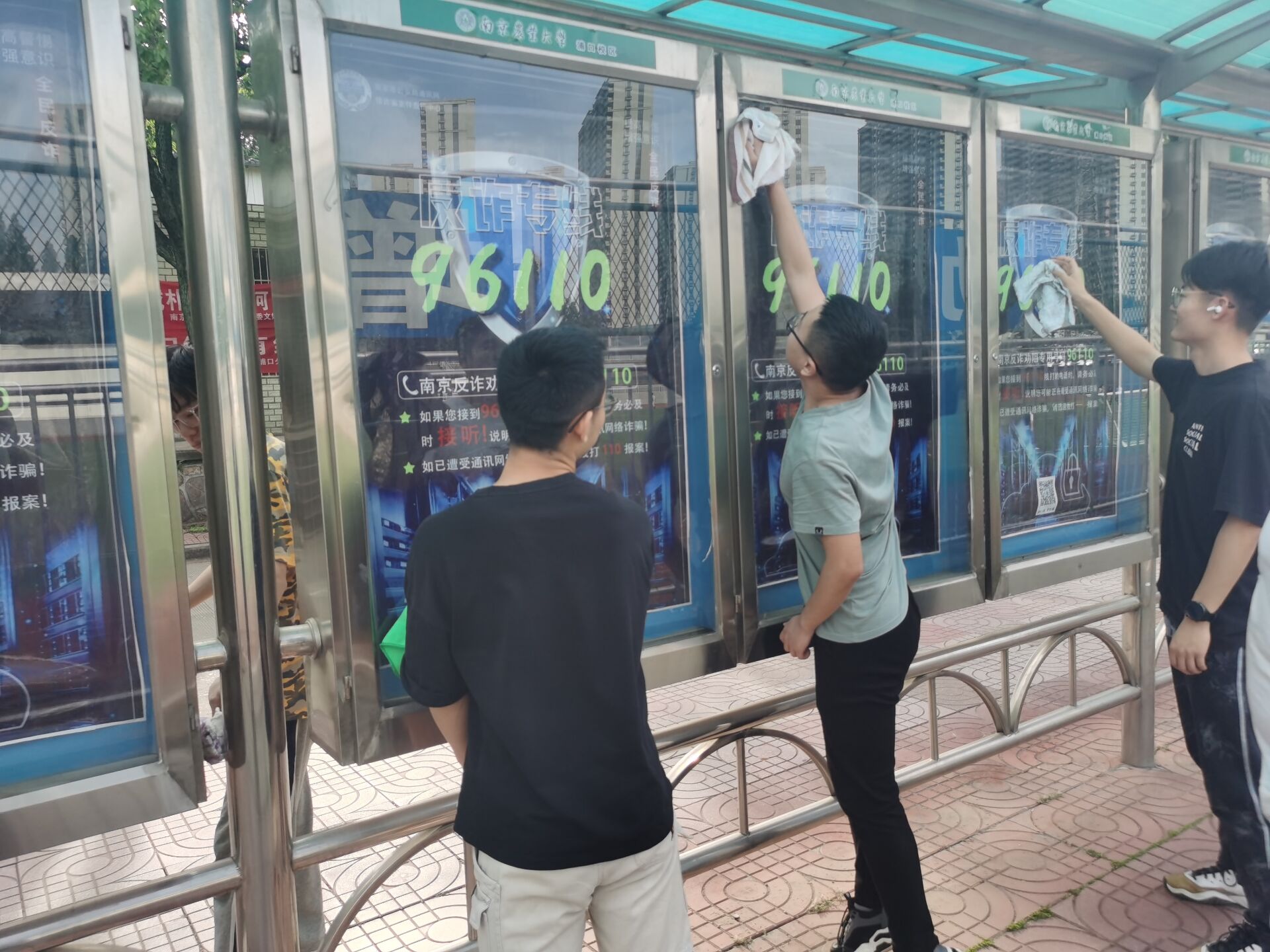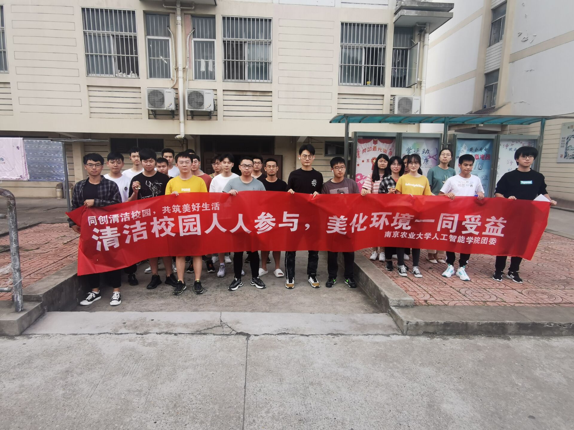 首先,参与活动的全体志愿者带好事先准备的抹布,按时在预通知的指定地点集合。随后在工作人员的带领下,志愿者们按照具体的分组,前往学生宿舍楼下和校园宣传栏,对宿舍楼下晒衣物和被褥的栏杆以及宣传栏的玻璃进行了清洁。在清扫过程中,志愿者们向学生们传达了“创建清洁校园环境,注意环境卫生”的理念。清扫工作完毕以后,志愿者们回到集合地点,进行活动签退并合影留念,至此,校园清扫活动顺利结束。