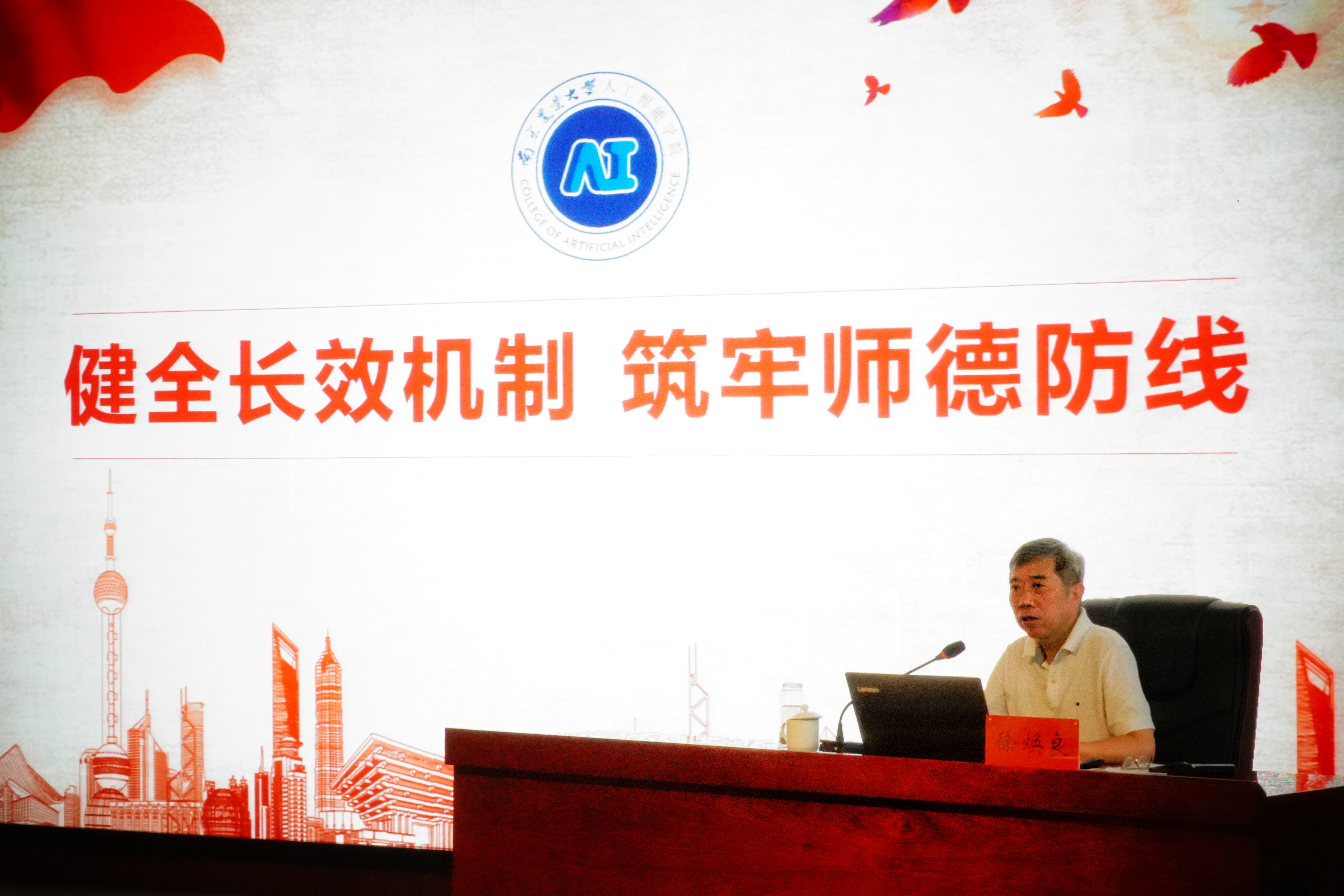 18日上午,学院院长徐焕良做了《健全长效机制 筑牢师德防线》专题讲座,讲座由学院党委副书记(主持工作)沈明霞主持。徐焕良从师德师风建设要求与意义、教师职业行为十项准则阐释、师德标准贯彻落实要求等方面着手,引导学院教师把教书育人和自我修养结合起来,推动政治素质过硬、业务能力精湛、育人水平高超的高素质教师队伍建设。