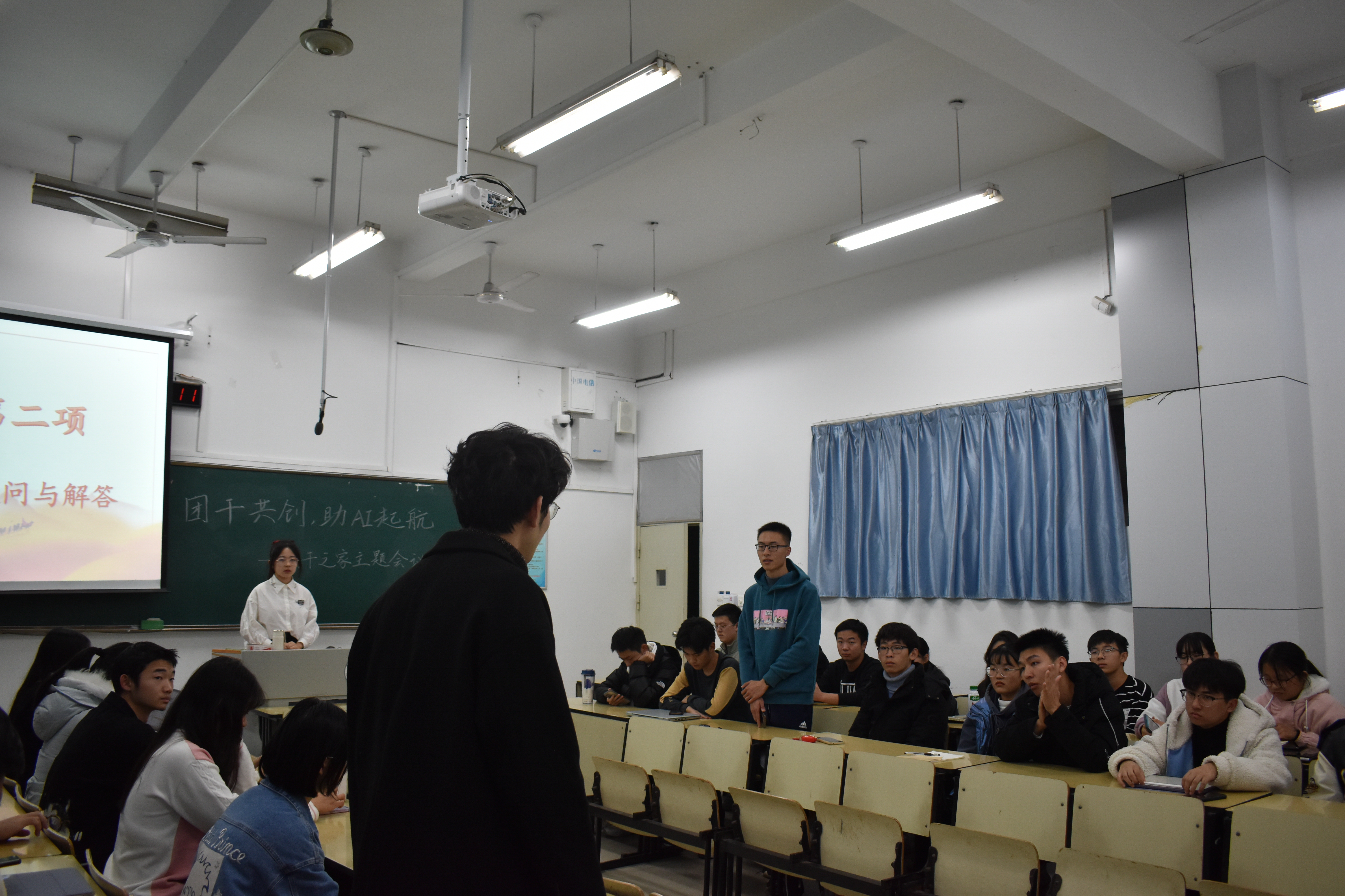 随后,大一班级就具体工作中的疑问与难题向大二学长学姐提问,大二班委根据自身的理解以及平日的经历经验为大一班委进行答疑,传授可实践方法。最后,魏宇宁对部分难题提出见解,并鼓励各班班委提高自身综合素质,充分利用身边资源,更加高效地进行班级工作。