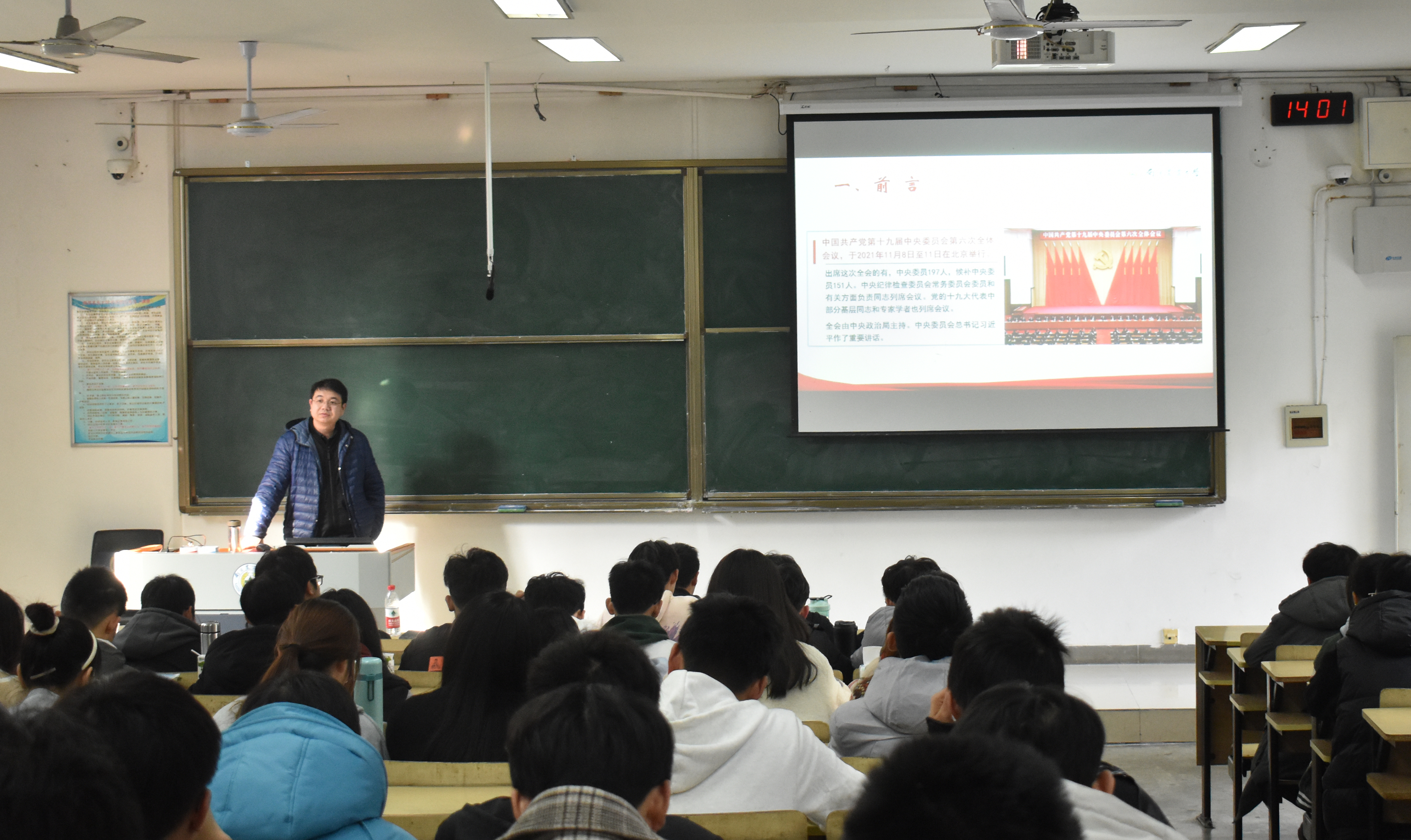 在汇贤楼D101教室举办“党的十九届六中全会精神”宣讲会,宣讲会特邀马克思主义学院讲师、校团委副书记朱鹏担任主讲人。本科生辅导员魏宇宁与学生代表参与此次宣讲会。