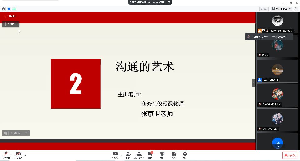 线上开展了高级团校培训开班仪式暨“协商共勉,沟通共进”讲座,院团委邀请了商务礼仪授课教师张京卫、萝莉岛