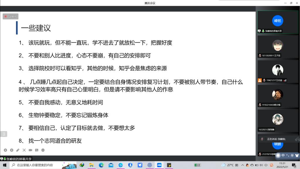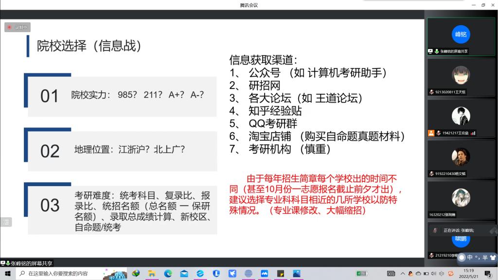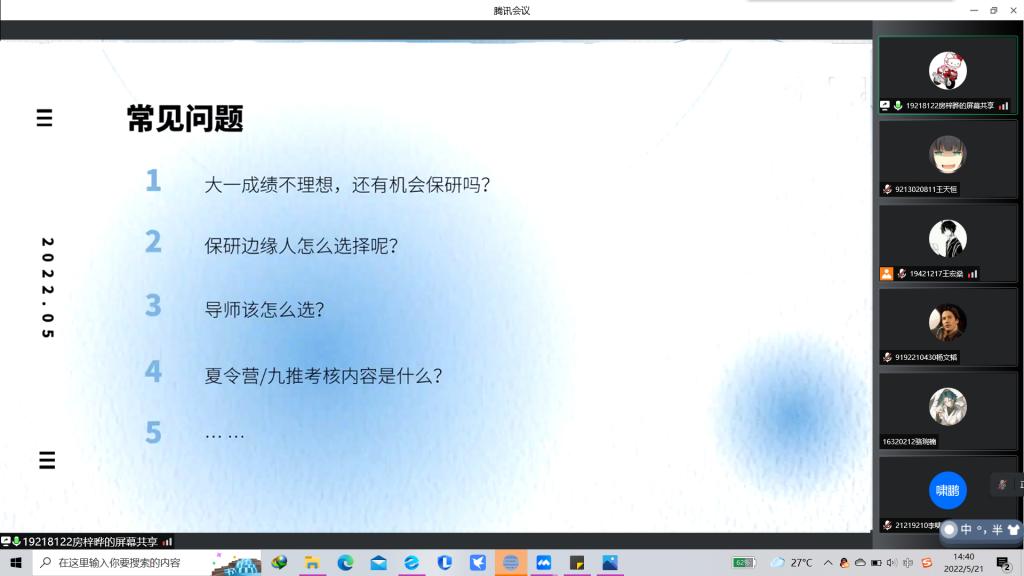 于线上召开“AI科研月”——“努力拼搏,研出未来”保研考研知识讲座。保研学子赵中豪、房梓晔,考研学子孙梦、张峰铭出席本次活动。本次活动面向萝莉岛