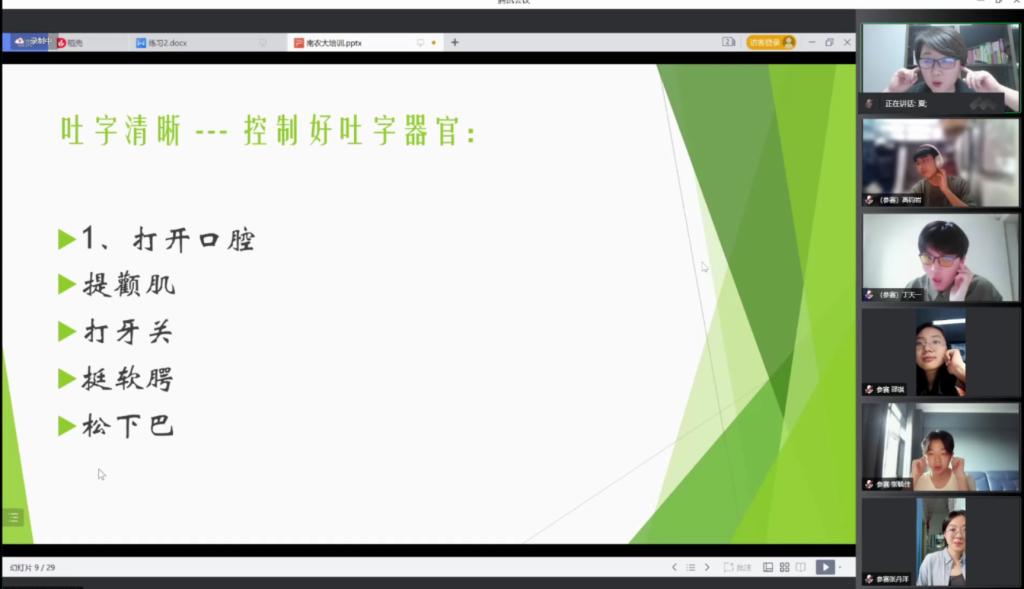 5月19日晚18:00,学校团委还邀请了南京广电资深主持人夏菁老师给参赛选手和校内同学开展了主持人综合能力培养专题讲座。首先,夏菁老师从多个角度向大家阐释了主持实用技巧。夏菁老师热情认真,不仅讲授内容引人入胜,同时身体力行,带领各位选手进行了口部操训练,调动现场学生的积极性。选手们积极参与,气氛融洽。培训临近结束,选手们积极提问,夏菁老师耐心解答,本次培训在大家的欢声笑语中圆满结束。通过此次集中培训让大家了解了如何成为一名优秀的主持人,切实做到以赛促学,以学促用。