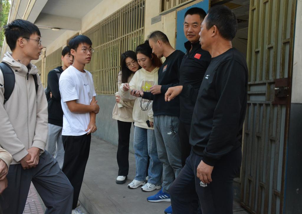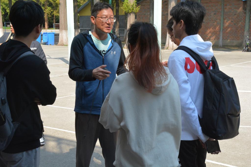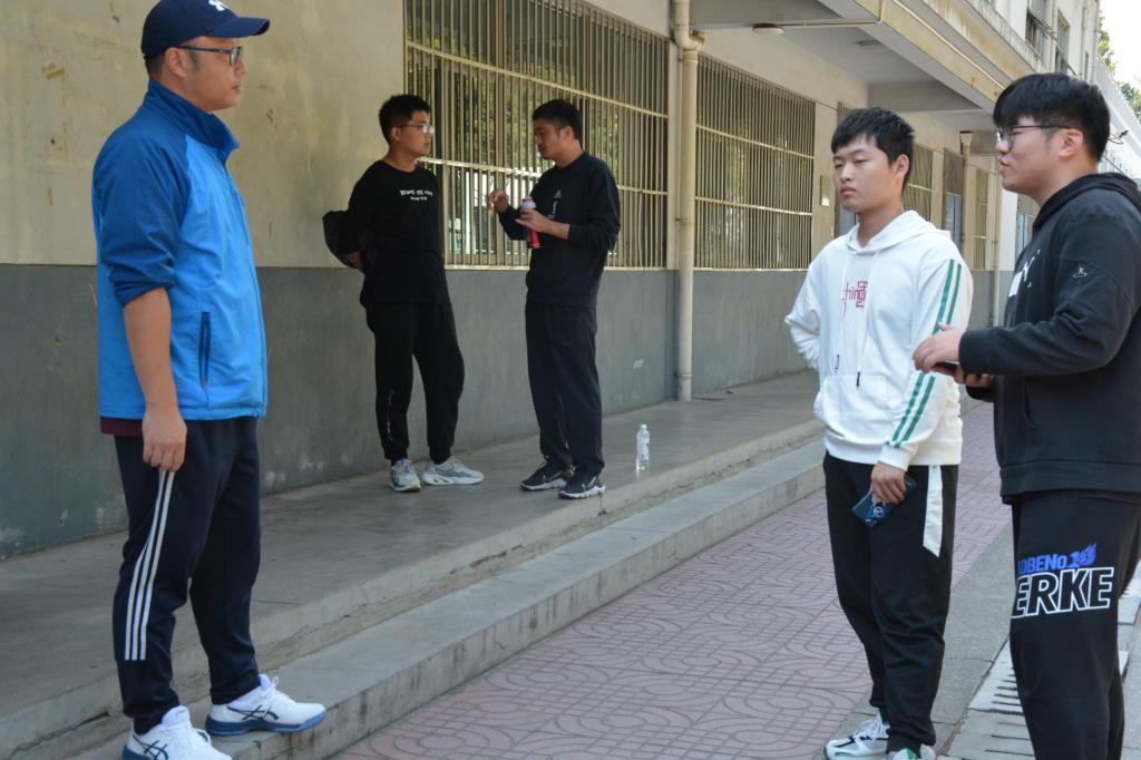 在操场器材室举办院运动会裁判培训会。会议由体育教研室主任王程负责总讲,由体育部第三教师支部党员董立兵、杨伟、吴亮、李强、胡冬临、李征、徐梁讲授各项目评判标准及注意事项。王程首先确定机动组、检录组、统计组、引导组的工作人员组成是否完善。接下来,他着重强调了针对观众安全的保障工作,要求工作人员做好秩序维护,避免造成意外伤害的情况。随后,由各位老师分别对田赛、竞赛不同工作人员进行细化培训,介绍了一些特定项目成绩的测量方法。最后,同学提出问题,老师进行解答。