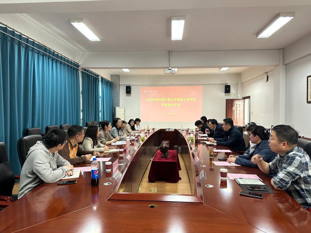 陆明洲副院长对中国计量大学信息工程学院的来访表示欢迎,并从历史沿革、办学规模、教师发展、教育教学、人才培养等方面对学院的教育教学相关情况作了介绍。刘杨副院长从科研平台建设、高层次人才引进、学术氛围营造等方面对学院科研现状进行了介绍。