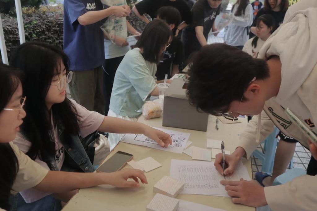活动期间,同学们反应热烈,他们字正腔圆、富有感染力的诵读使人心潮澎湃。同时,同学们在提供的便签纸上写下对其他同学的美好寄语,并交给工作人员便于后面到来的同学抽取,将寄语传递下去。随后,同学们就可以在现场抽取他人留下的寄语,感受来自陌生人的祝福。趣味比赛现场气氛热烈,同学们情绪高涨,欢笑连连,展示着属于大学生的青春活力。
