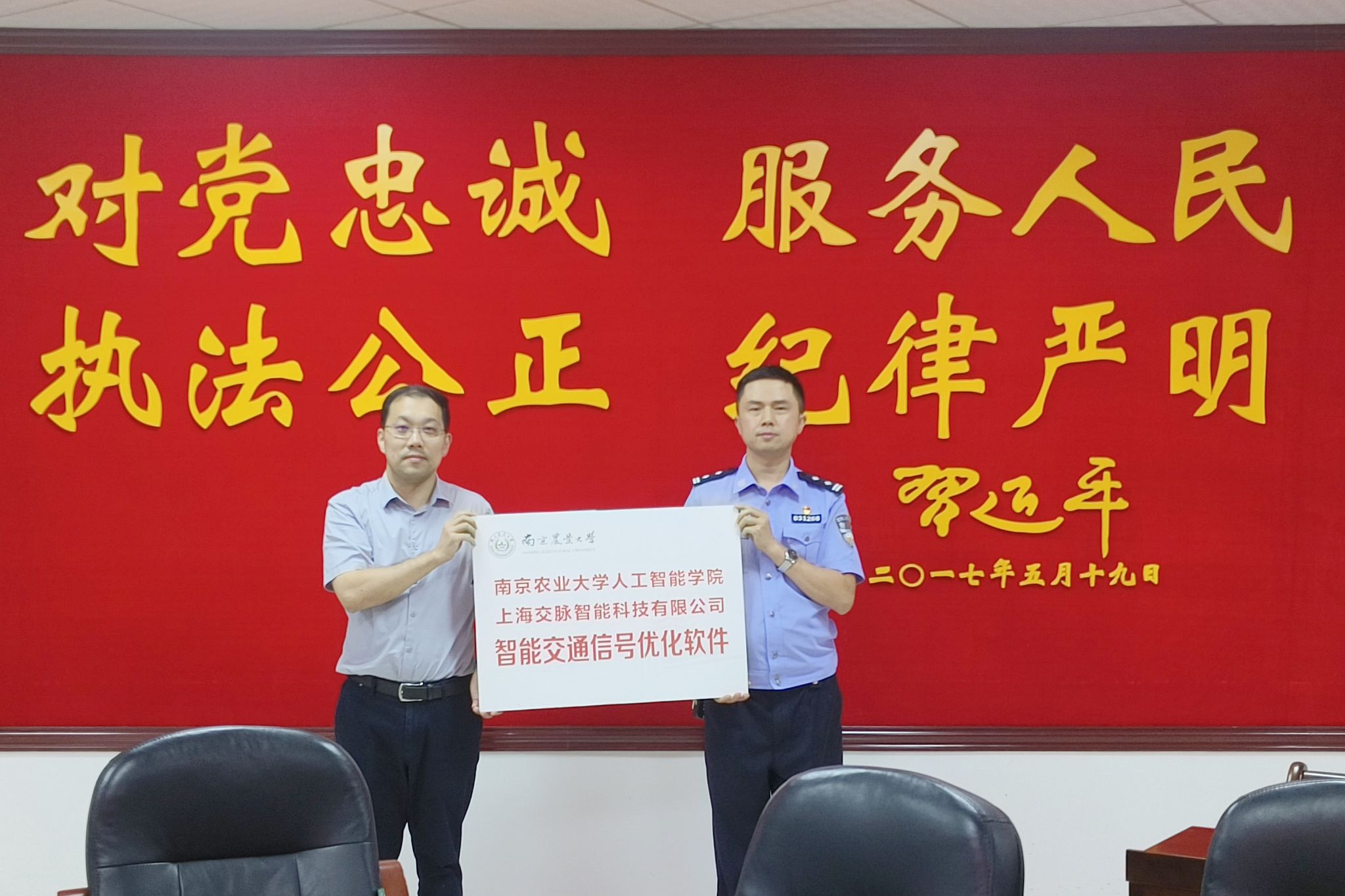 刘杨副院长与县公安局、县交警大队座谈,对智能交通管理出谋划策,并捐赠智能交通信号软件。