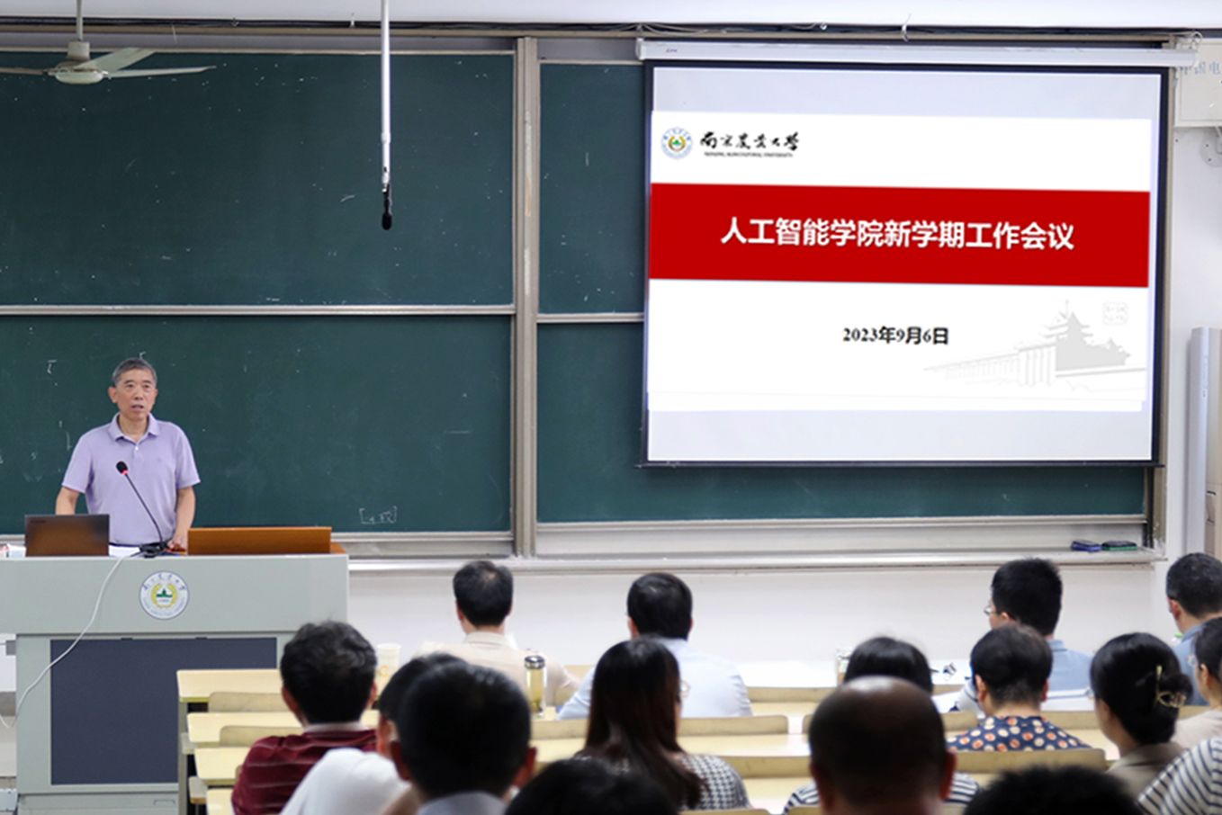 在浦口校区汇贤楼召开新学期工作会议暨主题教育总结大会。会议由徐焕良院长主持,学院全体教职工参加。