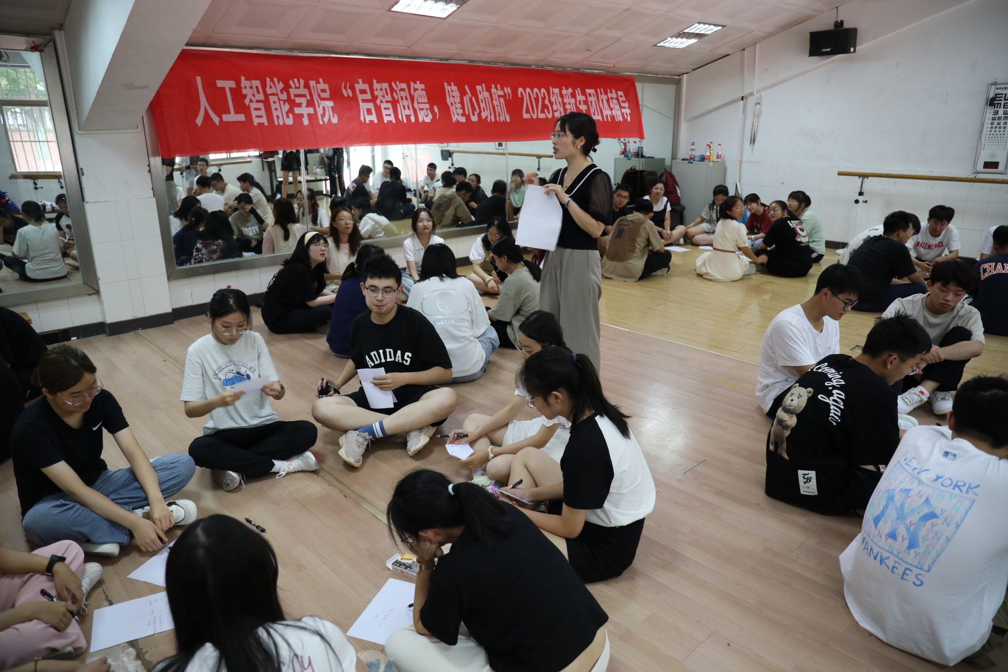 大学生心理健康教育中心全体老师带领2023级全体新生分组开展全覆盖式心理团体辅导活动。王世伟、康中和、林静、徐文、许梓薇、顾浩钰、张永婧七位老师围绕破冰、适应、融入、成长等主题展开团辅,旨在帮助新生快速融入学校生活,增强人与人之间的感情,加强集体凝聚力、合作力和包容力。素质拓展设置了“喊数抱团”“不倒森林”等趣味游戏和倾听、分享环节,同学们在轻松的氛围中畅谈大学生活初感受和成长故事,引发了共鸣和思索。