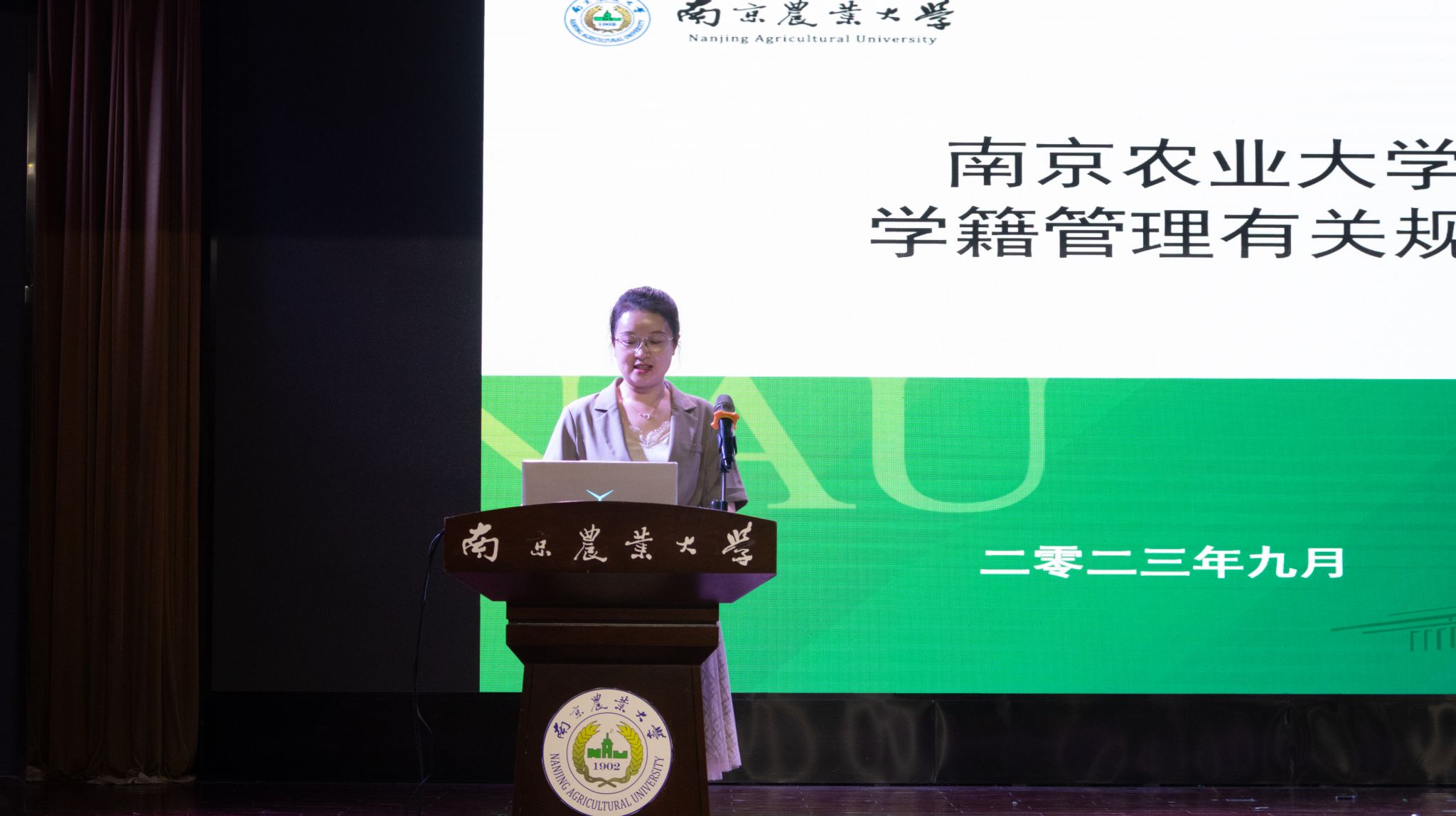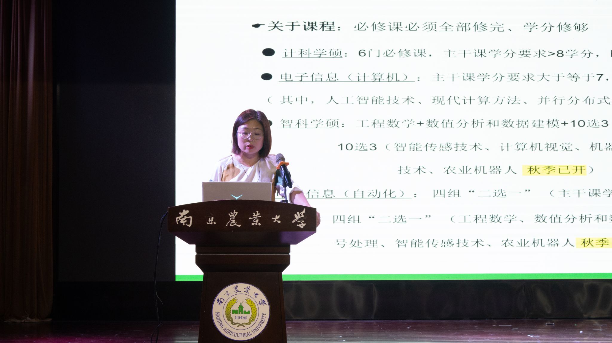 最后,学院本科生教学秘书韦伟讲述本科生学籍管理相关内容,帮助新生了解必修与选修课程以及综合发展等要求。学院科研秘书吴亚琼阐述研究生培养方案,让新生们提前定下科研、学习目标,为学业发展打下坚实基础。