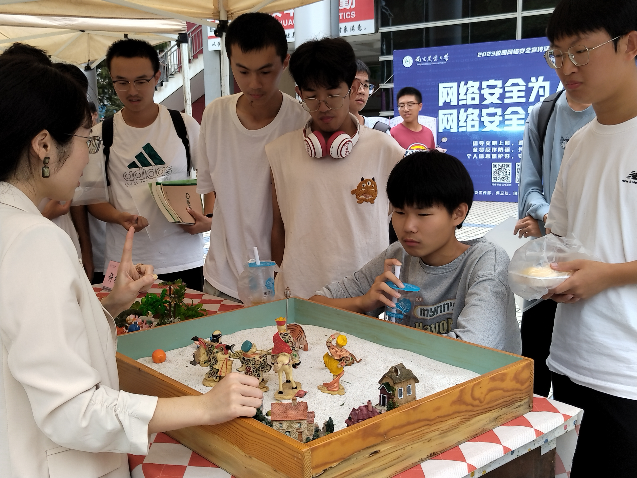 专业赋能,保驾护航。高校心理健康教育队伍是学生心理成长的有效载体,是促进学生全面发展的重要力量。“心之链接”环节由专职心理咨询师创造出“尊重、同感、真诚、保密”的氛围,为现场同学答疑解惑,梳理思绪上的小困扰,重塑大学生活新方向。“心之乐园”环节设置了沙盘游戏体验区和欧卡牌互动区,带同学们体验不一样的心灵探索之旅。沙盘游戏通过非语言的表达,创造一个独特的沙盘世界,由此通往内心世界,开启认识自我的新视角。欧卡牌则凭借对感受、思考和经历的叙事,促进情感的认知与表达,加强对内心世界的洞察。