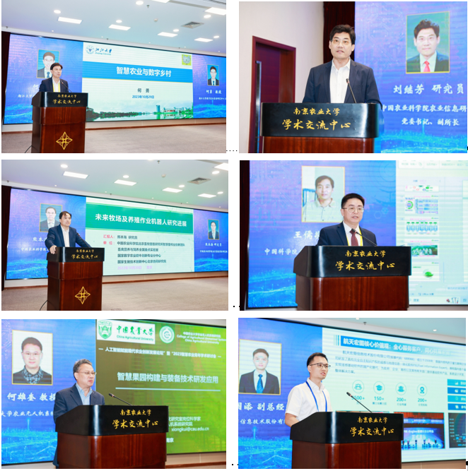 浙江大学求是特聘教授、浙江大学数字农业农村研究中心主任何勇,中国农业科学院农业信息研究所党委书记、副所长刘继芳,中国农业科学院北京畜牧兽医研究所研究员熊本海,中国科学院合肥智能机械研究所总工程师王儒敬,中国农业大学农业无人机系统研究院院长何雄奎,航天宏图信息技术股份有限公司副总经理林国添分别就“智慧农业与数字乡村”、“现代农业发展趋势与六大场景”、“未来牧场及养殖作业机器人研究进展”、“数字农业产业化与农业产业数字化”、“智慧果园构建与装备技术研发应用”、“遥感大数据助力农业农村一张图建设”等主题做了深度剖析。