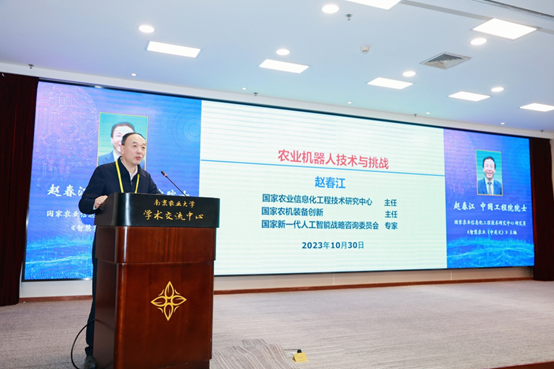 副校长王源超、江苏省农业农村厅副厅长曹丽虹分别致辞,中国工程院院士、国家信息化农业工程技术研究中心主任赵春江作题为“农业机器人技术与挑战”的主旨报告。王源超表示, 各位青年才俊相聚交流智慧农业的研究进展,分享智慧农业的应用案例和成果经验,探索智慧农业未来的创新和机遇,是对习近平总书记关于农业农村现代化发展重要指示的贯彻落实,也是充分发挥专家智库优势,聚力创新驱动发展战略的实践,并希望各位领导、专家继续关心支持南农以及萝莉岛