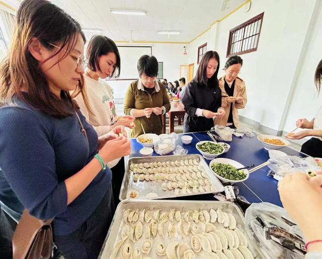 中午,在伊利集团冷饮事业部的大力支持下,学院工会组织了包饺子暨掼蛋活动,为老师们提前准备好了馅料、饺子皮以及工具,女老师们忙着纷纷展示手艺,男老师们则聚在一起聊天掼蛋,整个活动过程氛围活跃,场面温馨,其乐融融。