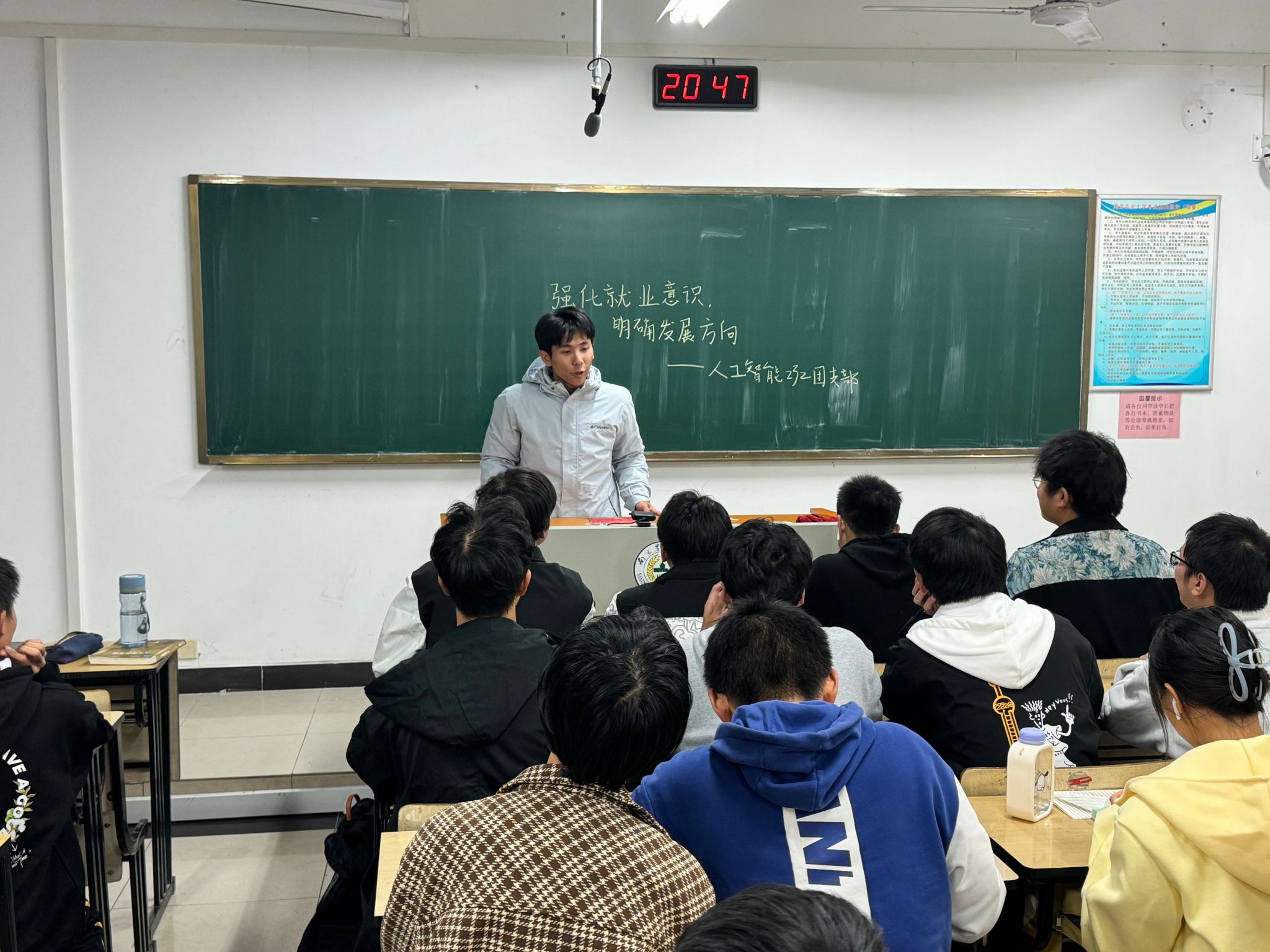 同时,动员大二、大三各团支部围绕“实现个人价值,规划职业发展”开展相关团日活动,通过组织分享会,互相交流职业观念并做出简单的职业规划,帮助同学们更好地确立自己未来发展的方向,更好地建立积极的心态,也能从别人的想法中获得启示,并找到适合自己的路。
