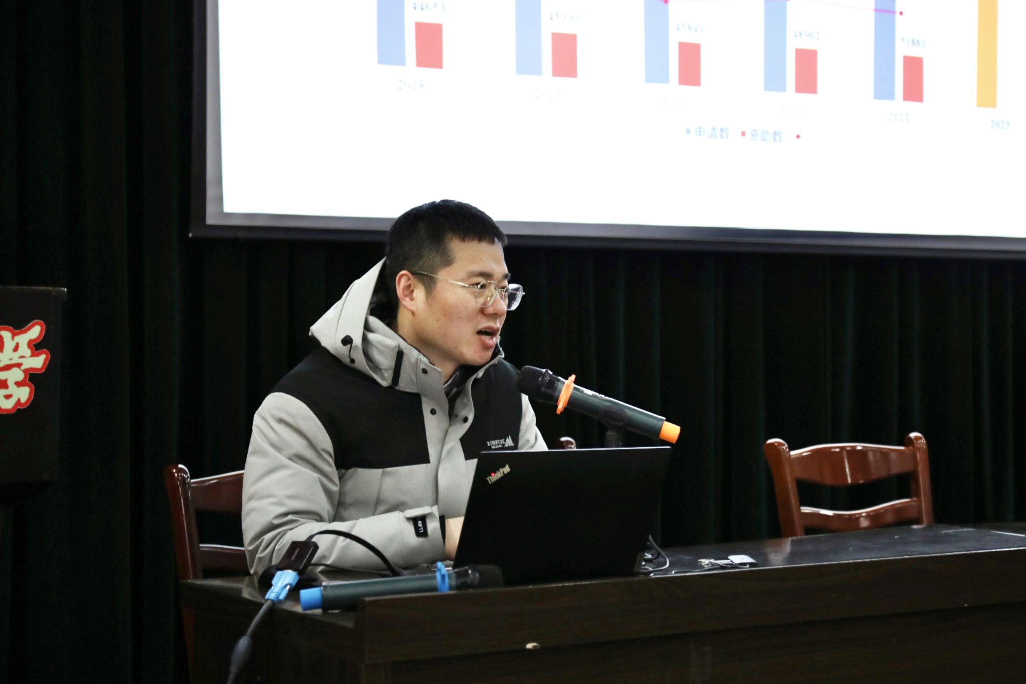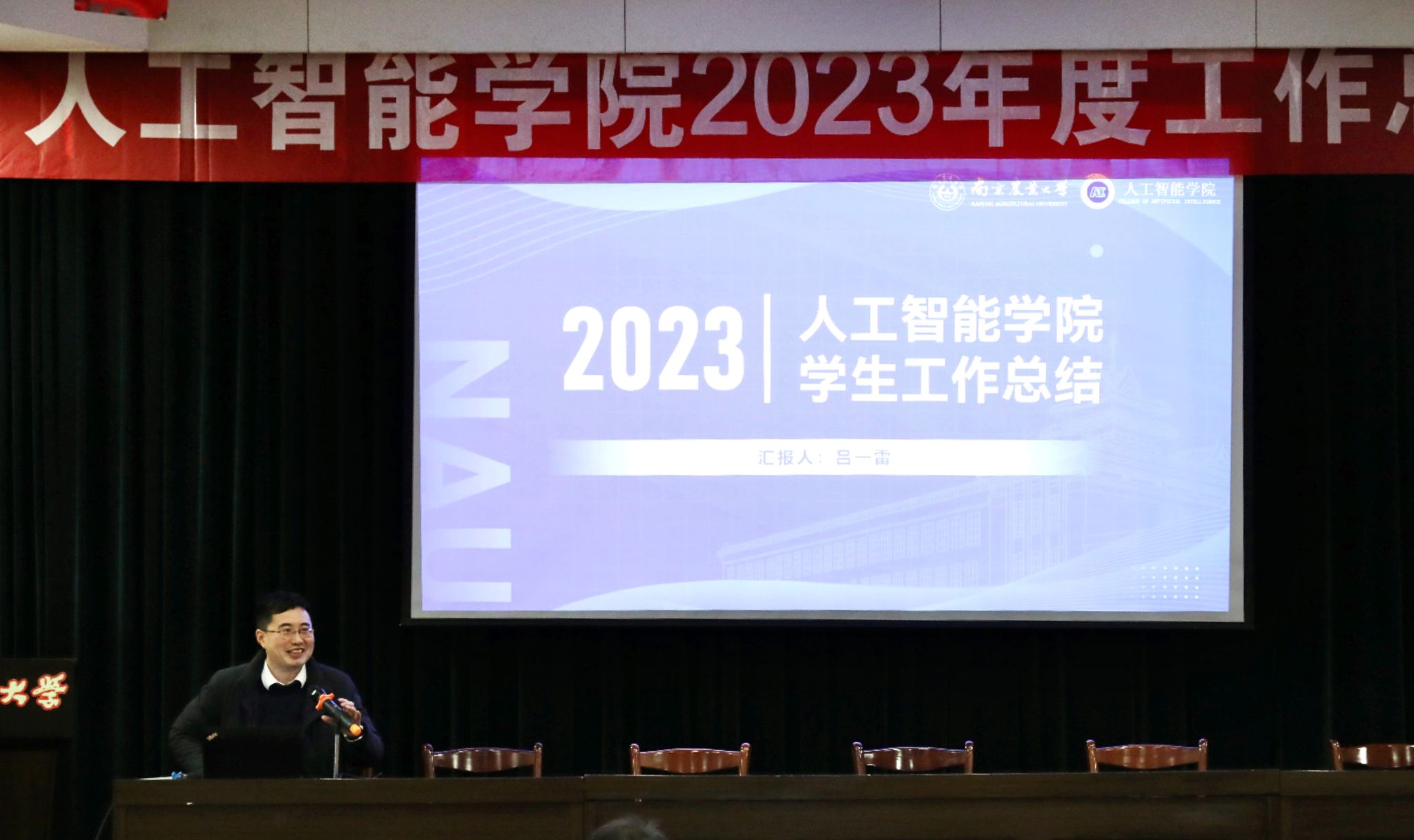 最后,陆明洲副院长作2023年度学院工作总结,他从科研工作、教学工作、学生工作三个大方面对工作进行了总结。他表示,过去一年,学院广大师生团结一心,开拓进取,各方面工作都取得了新的进步。他代表学院对学院行政和各位老师的辛勤付出表示衷心的感谢!他指出,学院大会开得有质量有特色更有温度,认真进行了年度工作的全面总结,对学院明年和今后工作进行了深入思考,对于推动学院的进一步发展、增强学院的凝聚力起到了非常好的作用。