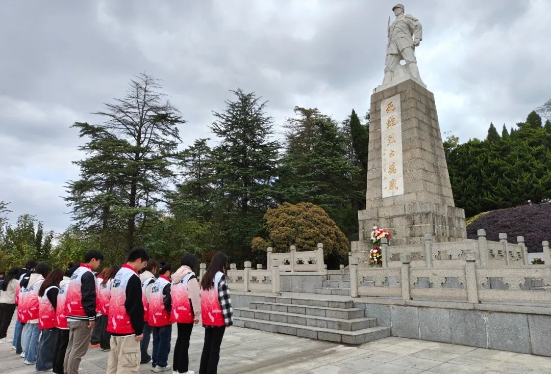 在桂子山烈士陵园,同学们向烈士默哀,表达对革命烈士的崇敬之情。大家表示要传承红色精神,做好人生规划,努力学有所成,为祖国建设贡献自己的一份力量。
