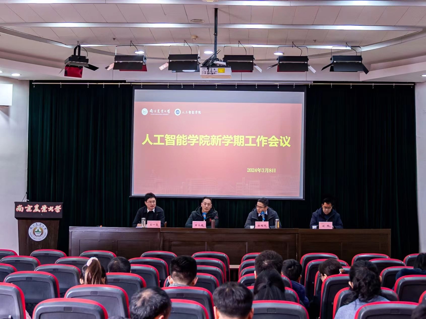 在浦口校区图书馆报告厅召开新学期工作会议。会议由田永超书记主持,全体教职工参加。