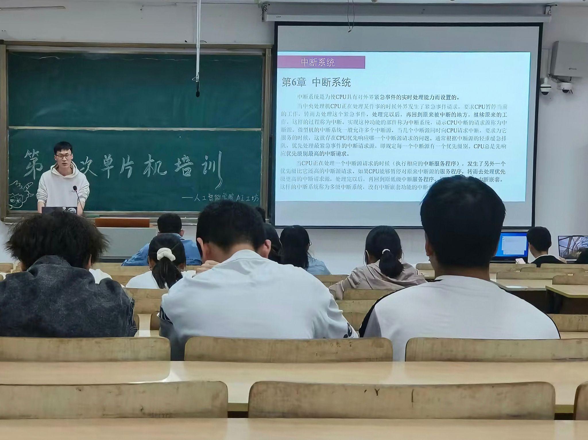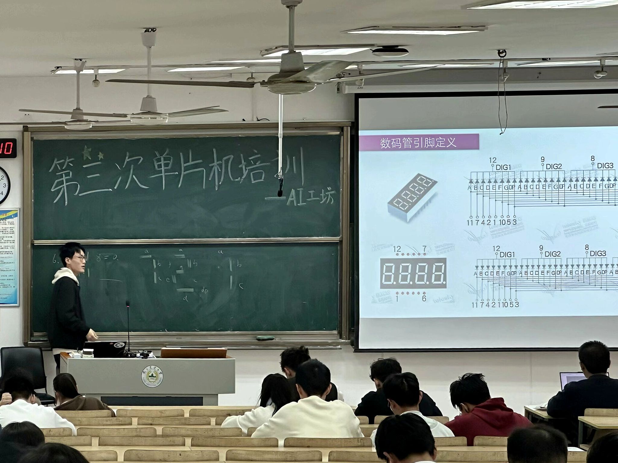 团委的牵头带动下,本期单片机系列培训以普及单片机知识为出发点,在第二课堂系统面向整个浦口校区开放报名。期间,还利用学院官方QQ、微信账号等媒介进行广泛宣传,得到学生的积极参与和踊跃报名。整个培训课程结构清晰、安排合理,主讲者分别在6次课程中对LED灯、独立按键、静态数码管、动态数码管、LCD1602、矩阵按键、中断系统、定时器和计数器等功能模块进行了详细地讲解和说明,极大地增进了在场同学对单片机的理解。