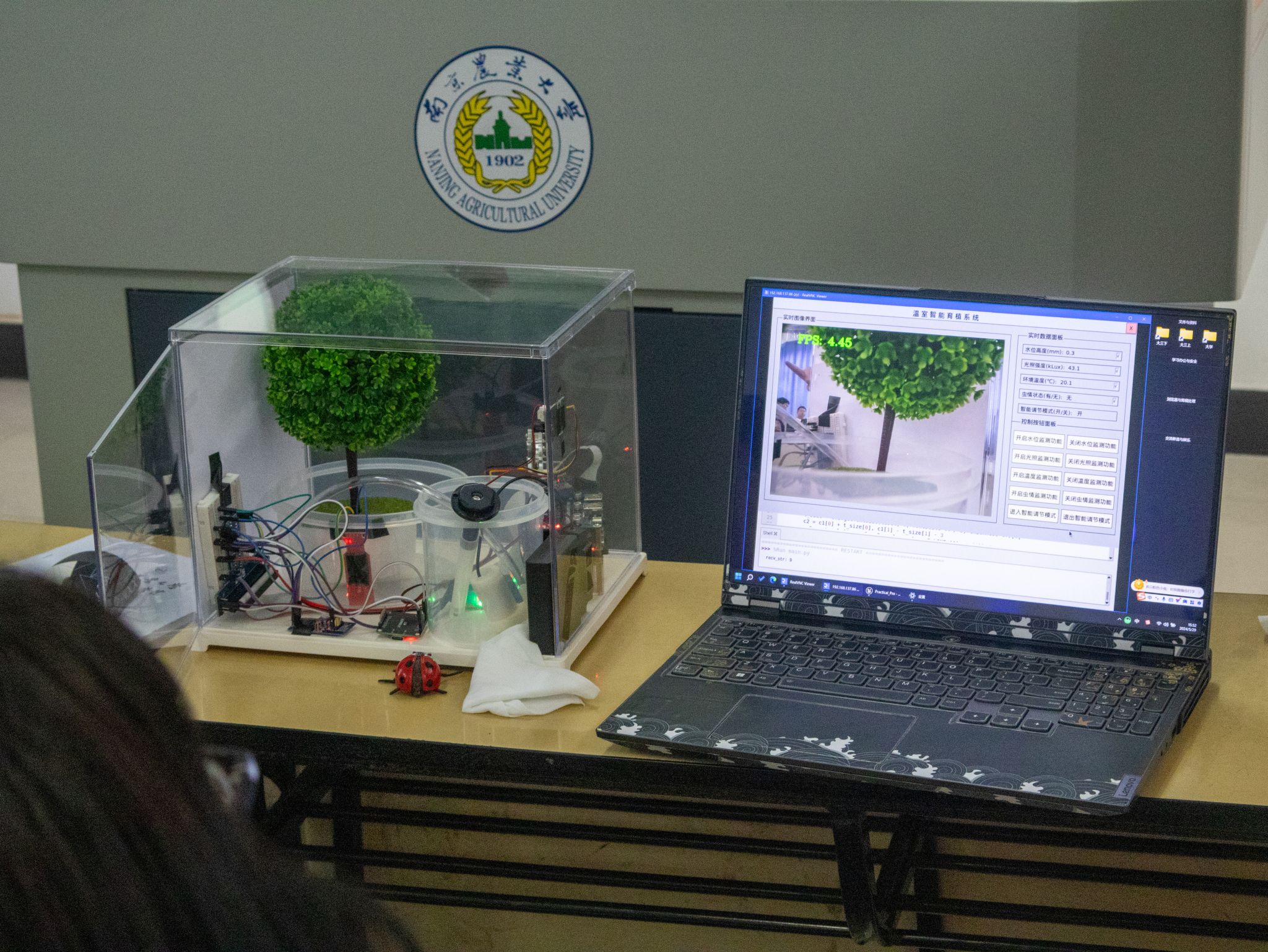 答辩现场紧张有序,答辩项目丰富多样,其中《基于Raspberry Pi 的田园环境监测与灌溉控制系统》展示了现代信息技术与农业自动化技术的智能解决方案;《云翼智巡smartguard:养鸡场全维智能监测与健康干预系统》展示了先进信息技术与养殖业需求的综合性智能系统,可以为鸡舍创造一个良好的环境;《基于树莓派的智能家居系统》能够实时监测室内温度、湿度、烟雾等多种环境参数,并通过手机应用进行远程控制和报警,进一步增强了学生对物联网和智能家居领域的理解。