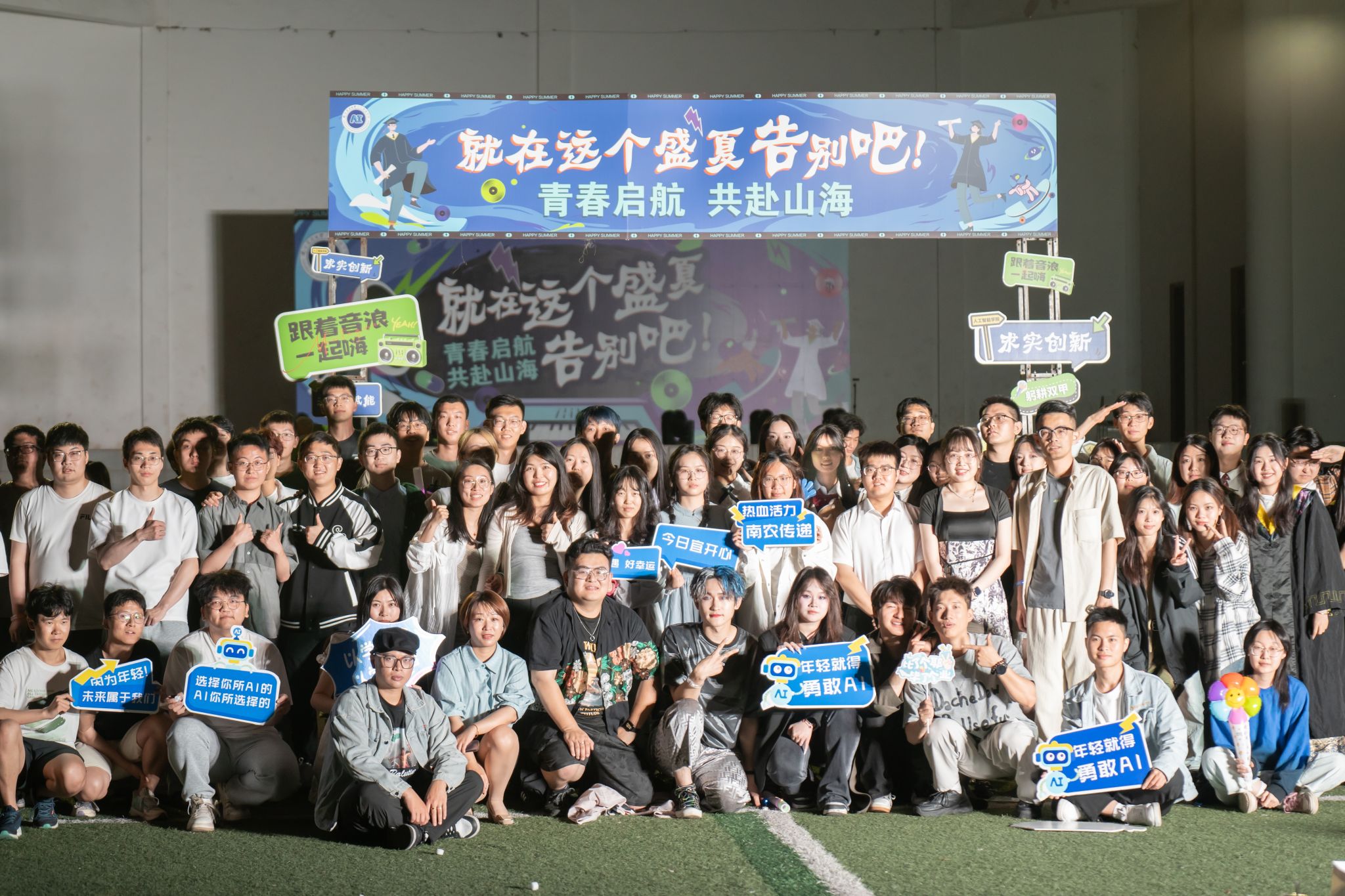 在最后阶段,到场全体毕业生与嘉宾席老师齐聚一堂,进行合影留念,毕业歌会至此圆满落幕。