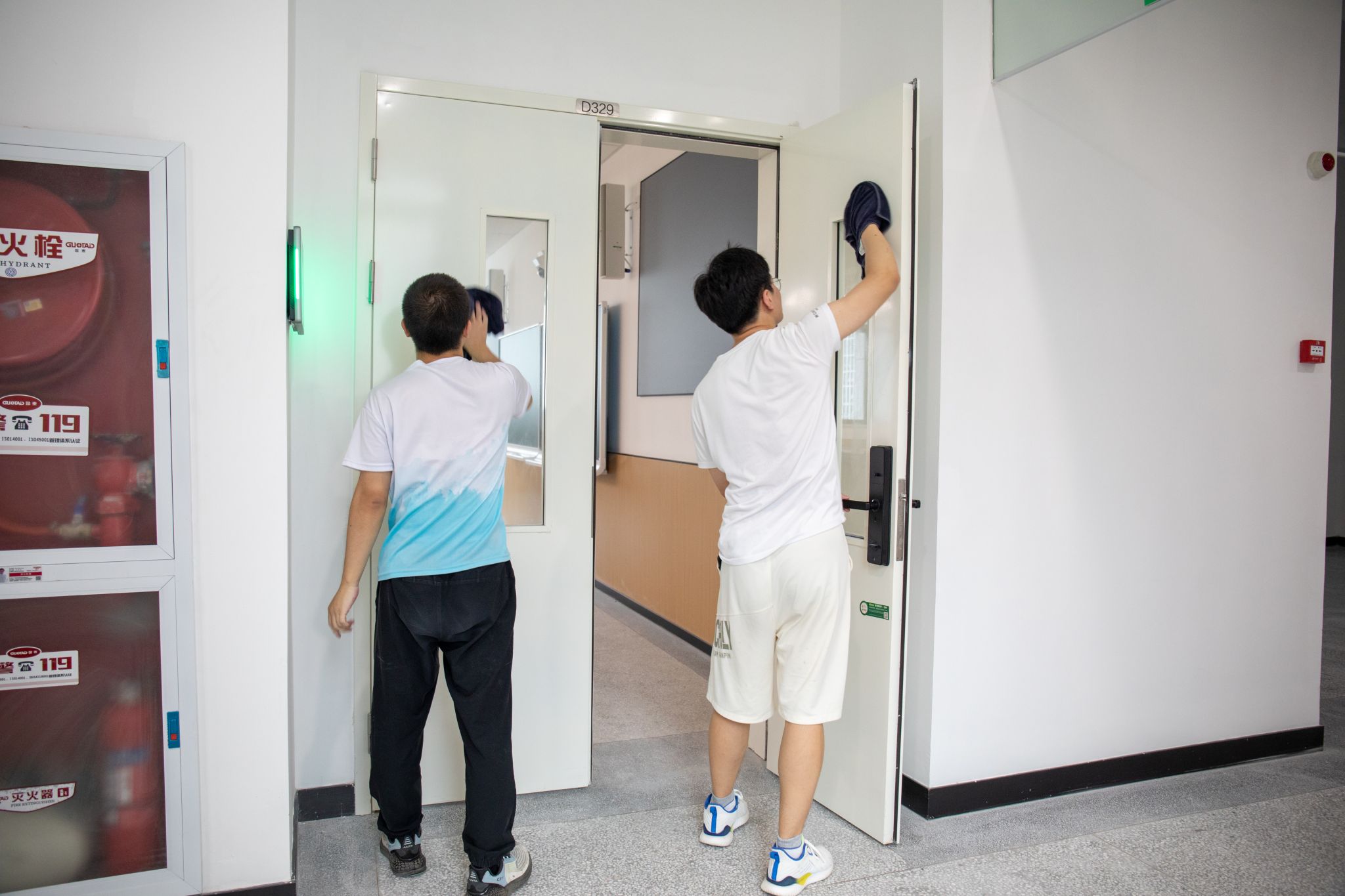 学院师生以党支部为单位领取工具,分别前往公共教学楼D面共28间教室开展大扫除工作。从桌椅、门窗再到黑板讲台,各支部组织有序、分工明确,充分发扬“不怕脏、不怕苦、不怕累”的精神,对教室每个角落都进行了全面细致地整理和清扫。活动结束后,教室焕然一新,为学校师生营造了舒适整洁、卫生有序的上课环境,大家纷纷表示,要在身体力行的劳动中强化实践能力,锤炼敢于担当的意志品格。