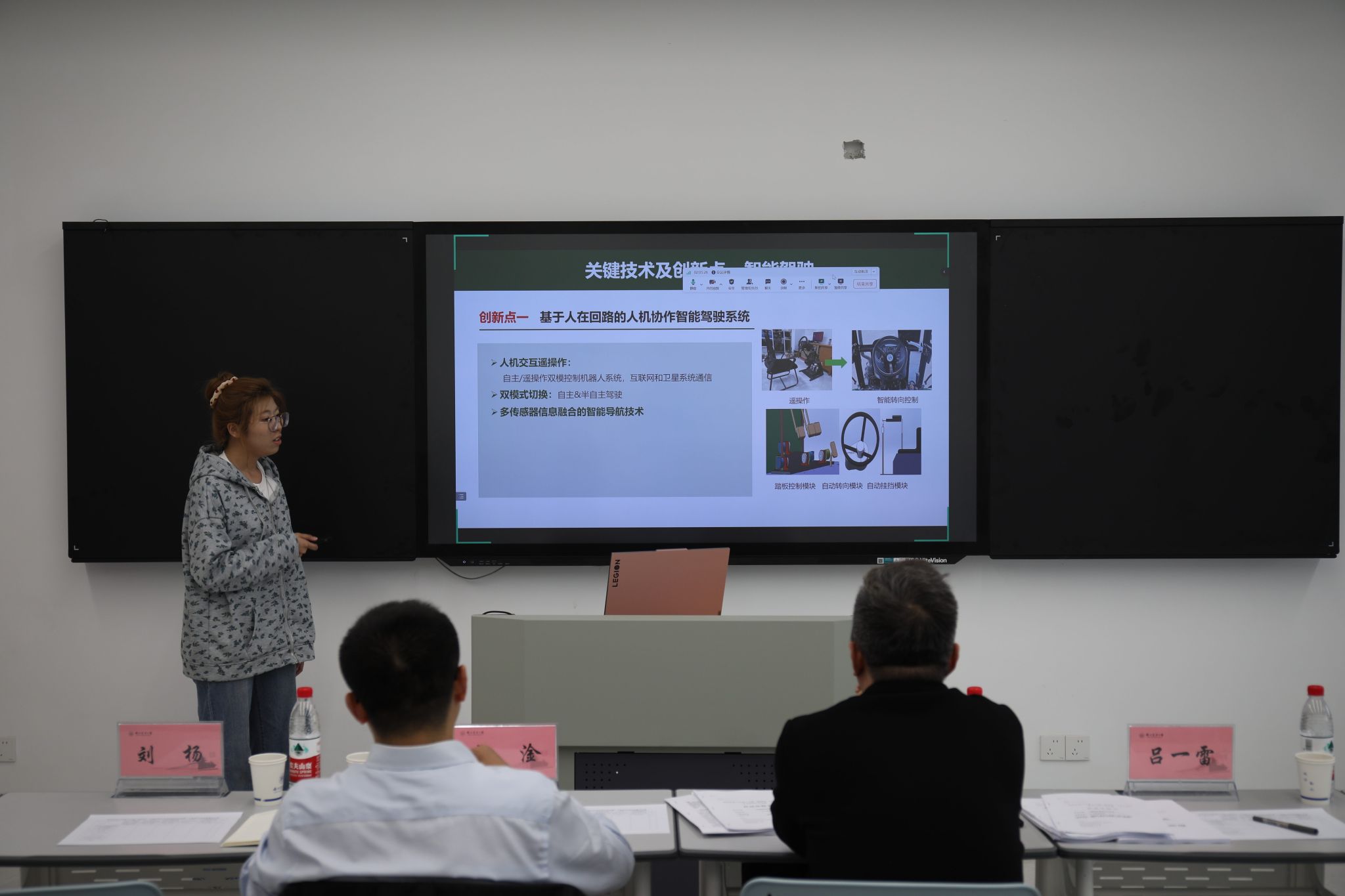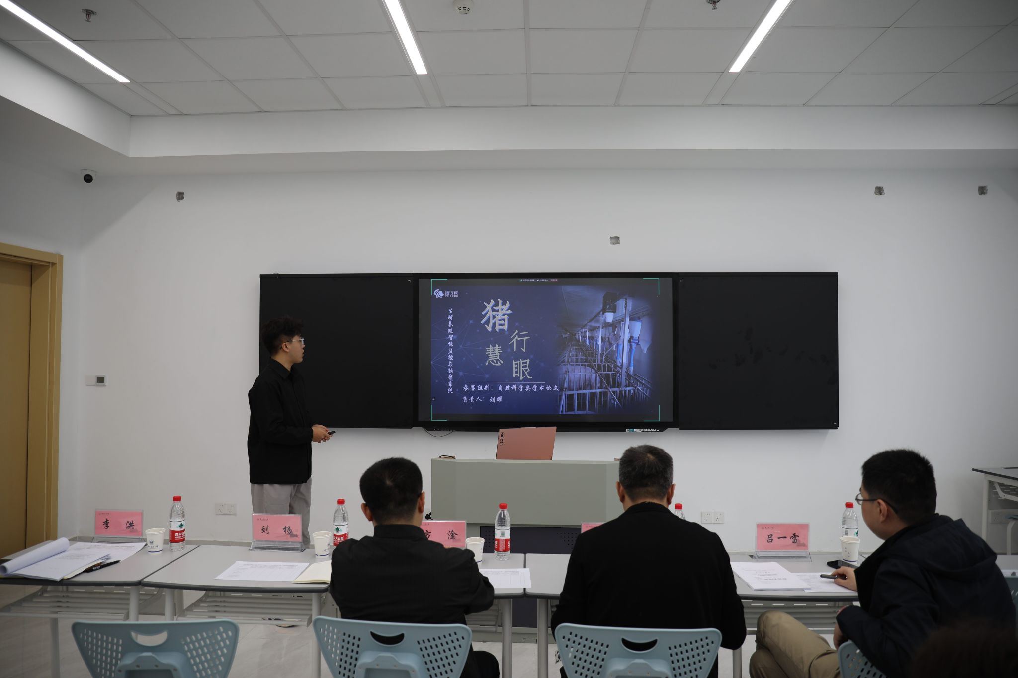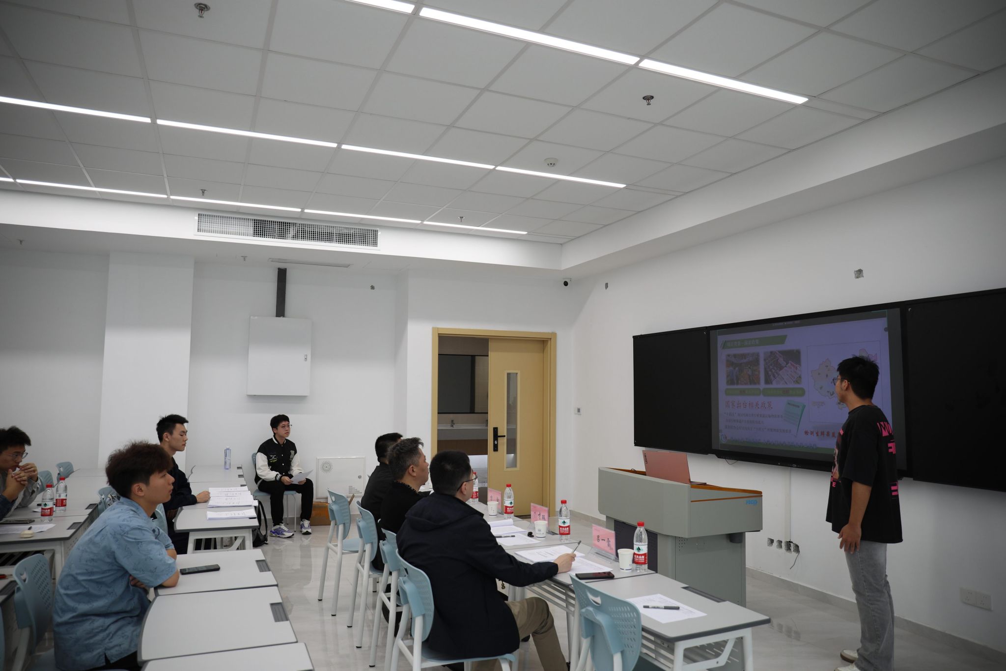 开赛以来,比赛得到同学们的热烈响应。经过材料评审、初赛选拔,共7个项目进入复赛。决赛采用现场答辩的形式,各项目汇报人借助精心准备的PPT从项目背景、设计方案、关键技术和创新点等方面进行详细陈述。