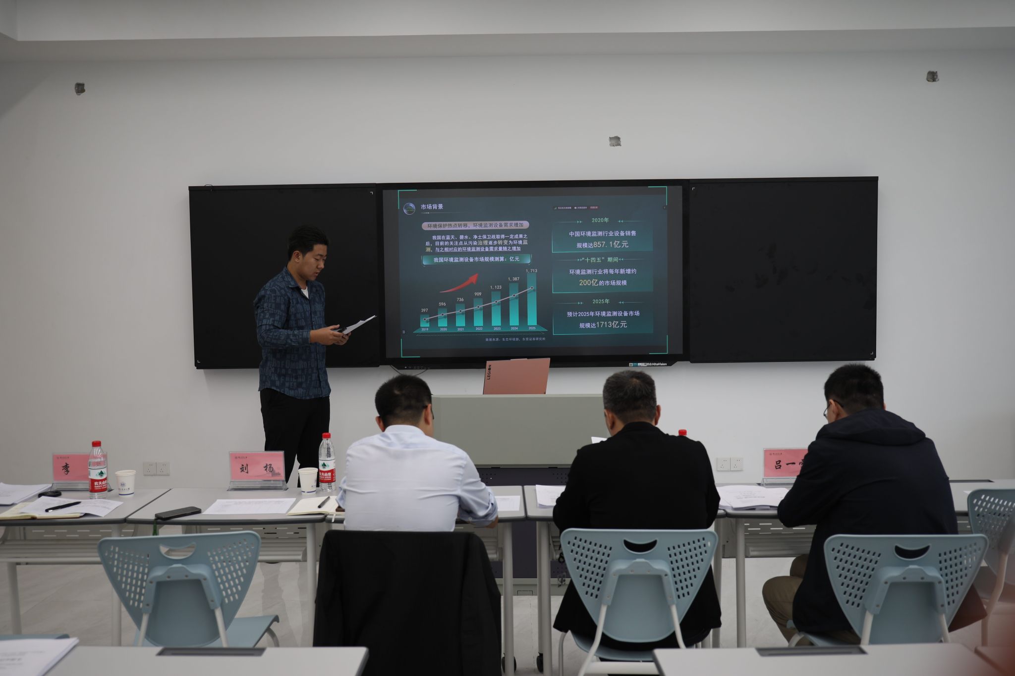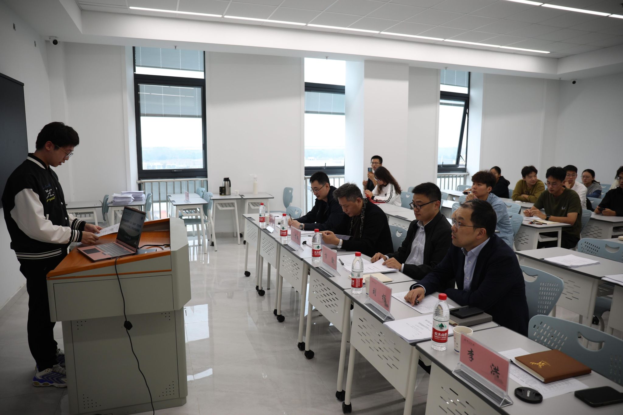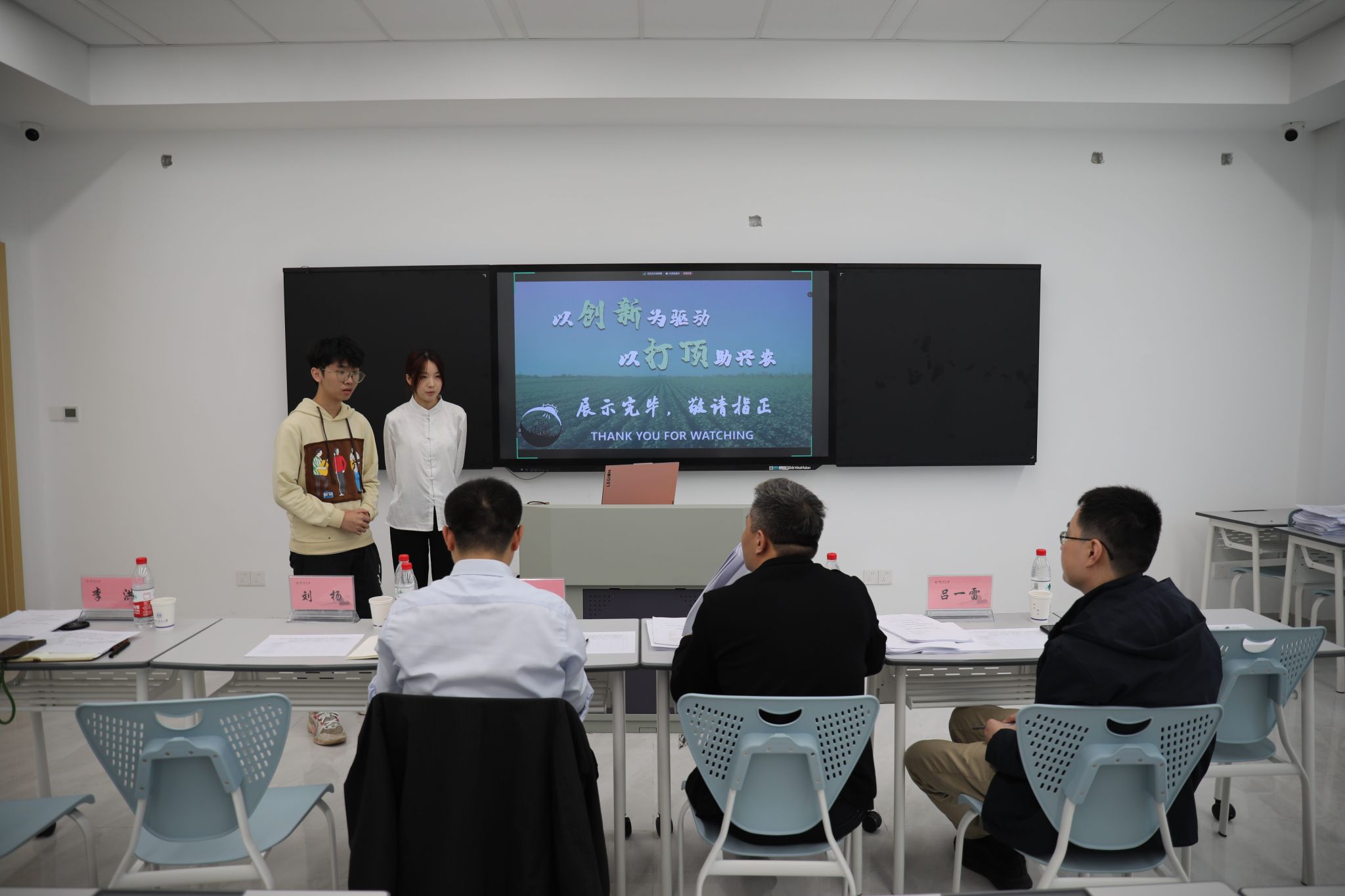 开赛以来,比赛得到同学们的热烈响应。经过材料评审、初赛选拔,共7个项目进入复赛。决赛采用现场答辩的形式,各项目汇报人借助精心准备的PPT从项目背景、设计方案、关键技术和创新点等方面进行详细陈述。