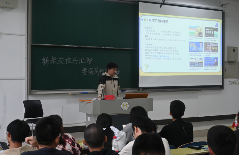 在电信类专业会场上,自动222班朱文韬结合自己的亲身经历,耐心解答了新生们关于课程选择和学习目的的疑问,并提供了许多有效的学习方法和建议;自动212班陈林蔚紧接着深入探讨了有关科研竞赛的话题,使同学们对其有了更加深刻的认识;而电信213班阚婉宁则以自己充实的校园生活为引,生动地向新生们介绍了学院内所有的学生组织,并解答了关于学时要求的疑问,她鼓励同学们在专注学业的同时,积极参与各类活动,在人智院这一片蓝天下,照耀属于自己的光芒。