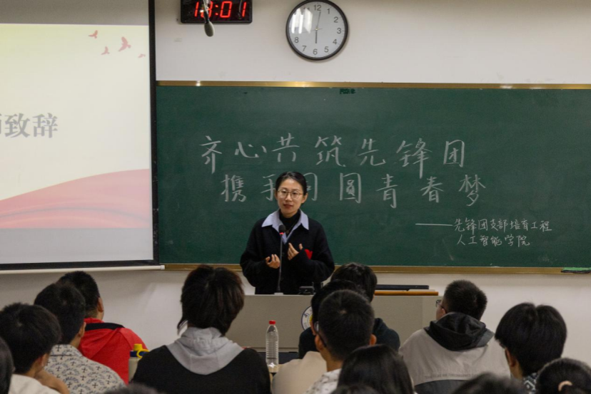 辅导员魏宇宁上台致辞,讲解了各项工作开展的注意点,并为各支部代表答疑解惑。魏老师再次强调了先锋团支部培育工作的重要性,鼓励各支部代表积极大胆地开展工作,激发基层团支部活力,创新基层团支部建设。最后,魏老师表达了她对先锋团支部工程的期许并鼓励大家为之努力奋斗。