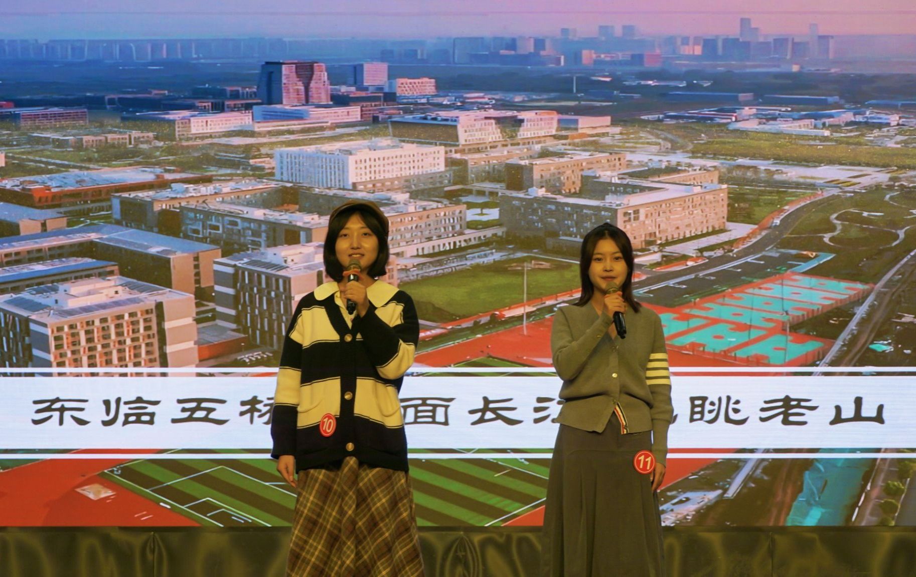 在第二轮比拼中,12位选手抽签分为六组,各组共同完成一篇关于“滨江新校区”的主题报道,角度和风格自行选择。信息管理学院陈雨菡与工学院陈拓海搭档主持,为我们分享了滨江新校区的数字化校园建设和创新的教学理念;信息管理学院邢燕燕与工学院张彦哲搭档,通过分享家乡美食带入对滨江食堂的期待;人文与社会发展学院王安宁与经济管理学院衣禹豪搭档向观众介绍滨江新校区的全新之处;理学院李梓缘与资源与环境科学学院陈宣伊搭档报道滨江新校区特色格局与建筑。各组选手间紧密配合,聚焦热点,用胸怀和格局传递了南农青年的声音,让观众看到我们在新时代的无限可能。