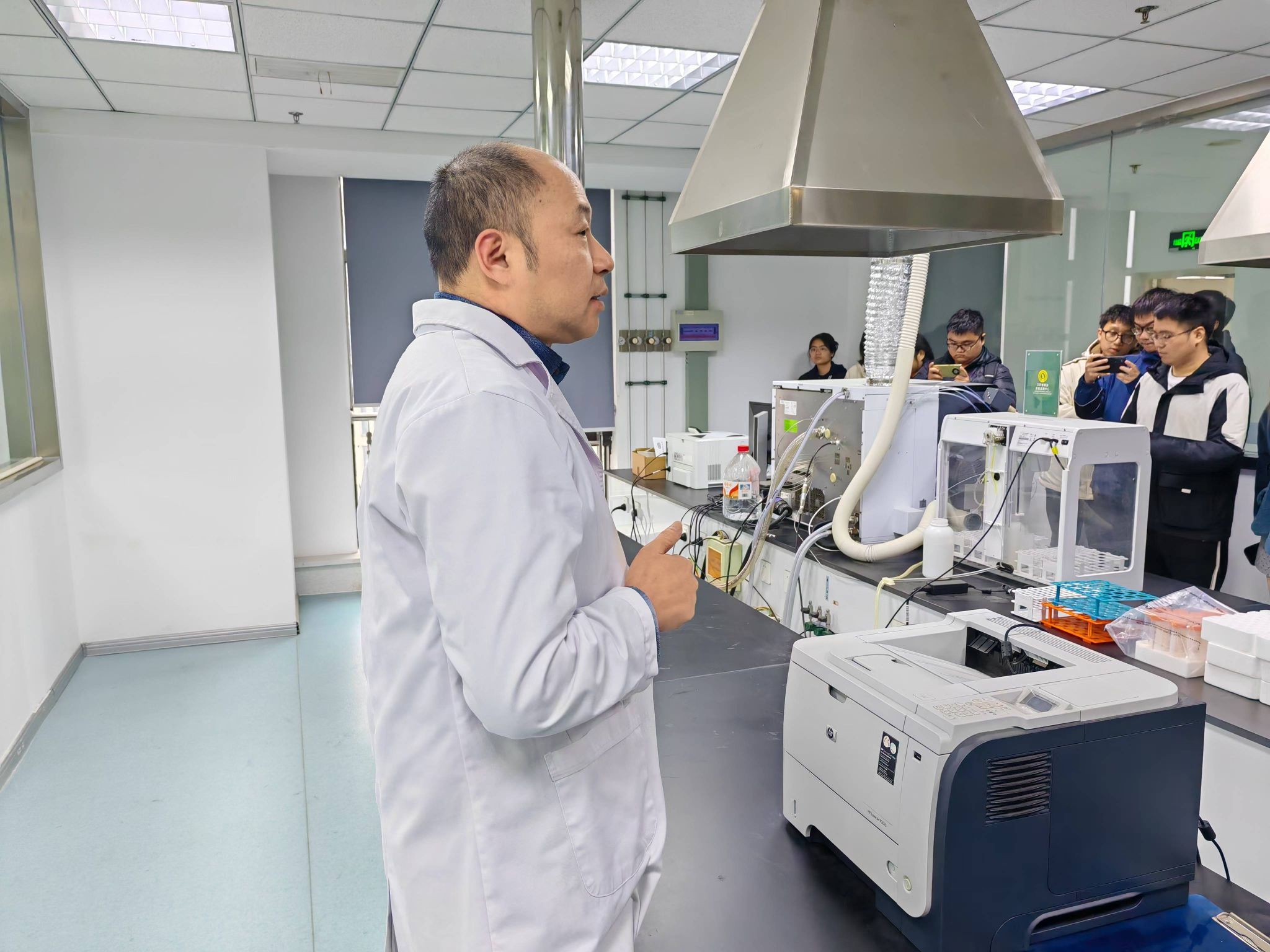 学生在工作人员的带领下依次参观了不同的实验室。于工作人员专业而风趣的讲解中,学生了解到“大米食味计”等新型粮油一体化检测分析设备,以及不同种质检测方法的技术变革,启发了学生对自动化专业于农业领域应用方向的新想法。