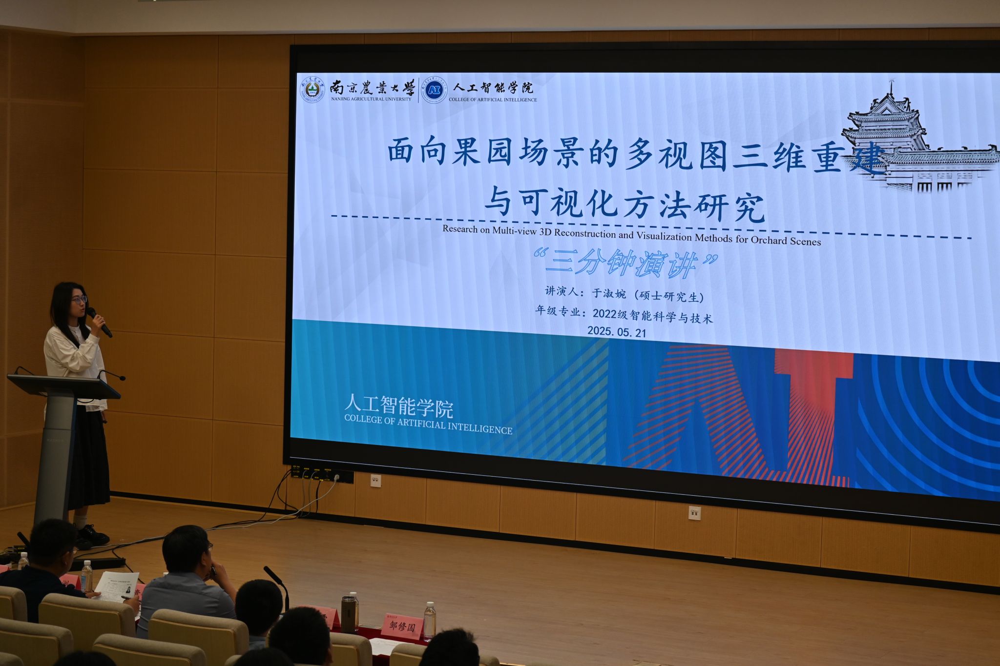 活动中,10位选手依次上台,用三分钟时间解构复杂课题,展现学术成果。