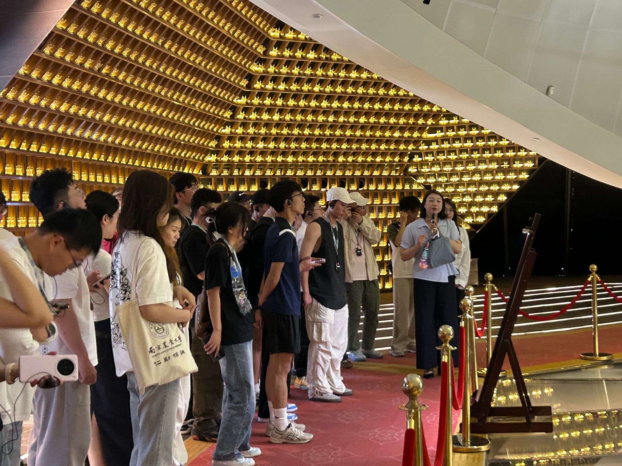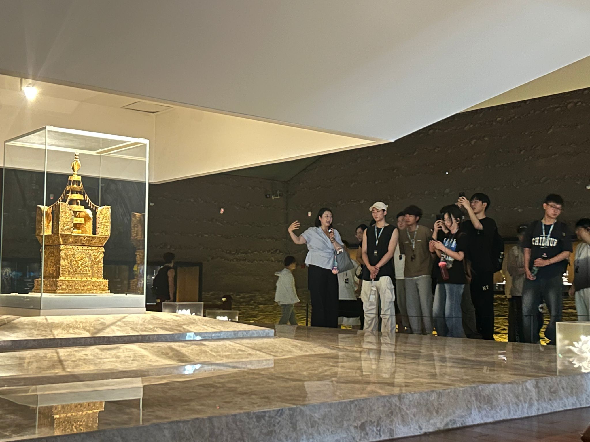 汇报结束后,师生团队随馆方专业讲解员深入大报恩寺核心区域,实地验证各系统在真实场景下的运行效果。从出土文物、地宫圣物到现代科技展陈,团队成员通过实地观摩深入了解这座明代皇家建筑的历史价值与保护现状。参观过程中,师生结合项目组开发的数字化平台,就智能导览系统的实际应用效果与馆方工作人员进行了深入交流与探讨,进一步明确了系统优化方向和功能需求。