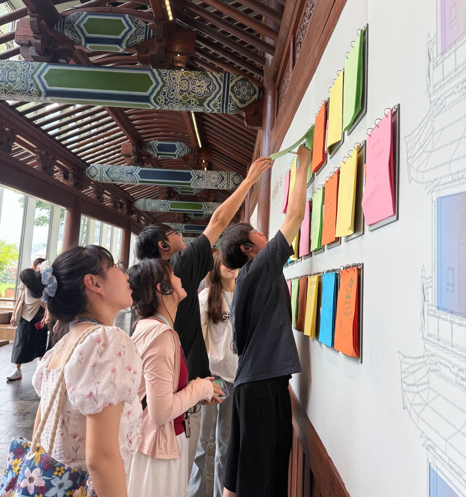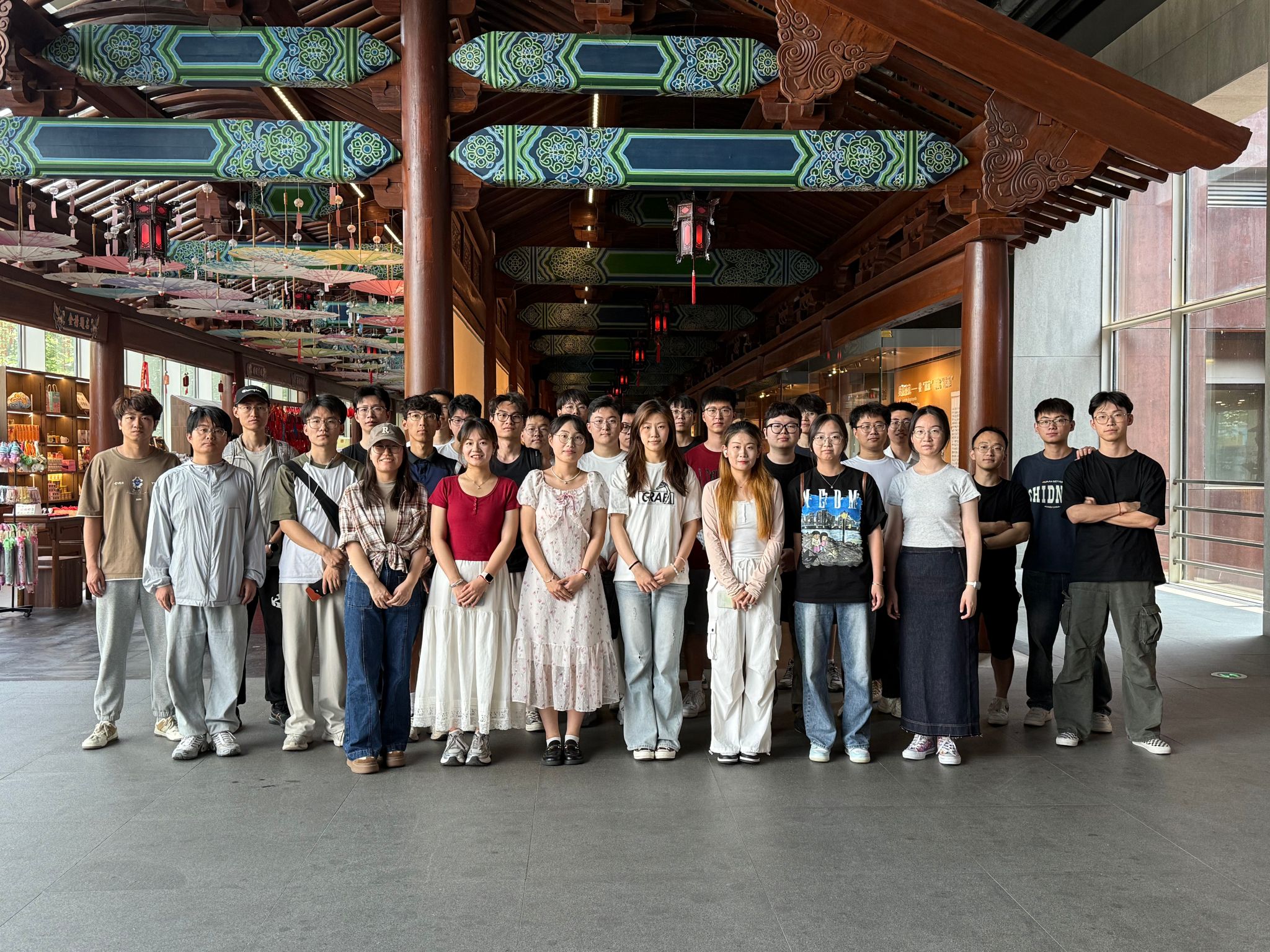 本次活动特别注重产学研协同创新。师生与文保专家就AI技术在智能讲解、环境监测、安全预警等领域的深度融合展开研讨。通过将数字技术与传统文化相结合,不仅拓展了研究生的学术视野,也为文化遗产的数字化保护与传播提供了新思路。学院未来将继续深化与文博机构的合作,推动人工智能技术在更多领域的创新应用。活动最后,所有参与的师生进行合影留念。