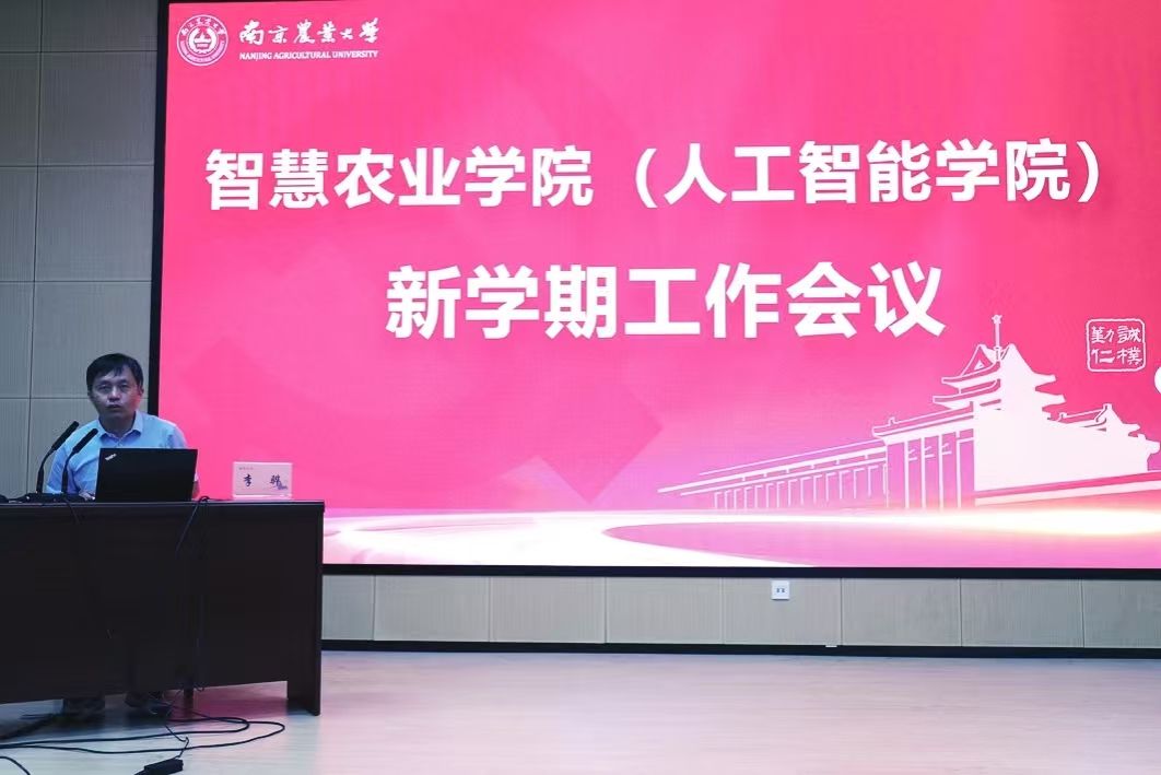 ,具有较好的发展前景。田永超详细分析了学院学科专业、师资队伍和科教平台现状,提出要以建设优势特色鲜明、人才自主培养能力强、关键技术攻关水平高,国内一流、国际知名的智慧农业领域教育科研型标杆学院为目标,通过交叉型一级博士点培育建设、组建“AI+农业”创新团队、打造国际智慧农业论坛品牌、深化产学研协同创新机制等举措推动学院师资队伍建设、人才培养、科学研究、社会合作、国际交流与合作等工作,促进相关领域关键技术和产品装备突破,赋能区域经济社会发展。田永超还对学院治理优化、文化建设等暑期工作进行了总结,并对“十五五”规划、计算机科学与技术人才培养和学科建设研讨、“智汇大讲堂”开讲、科研项目申报、AI赋能教育教学改革等新学期重点工作进行部署。