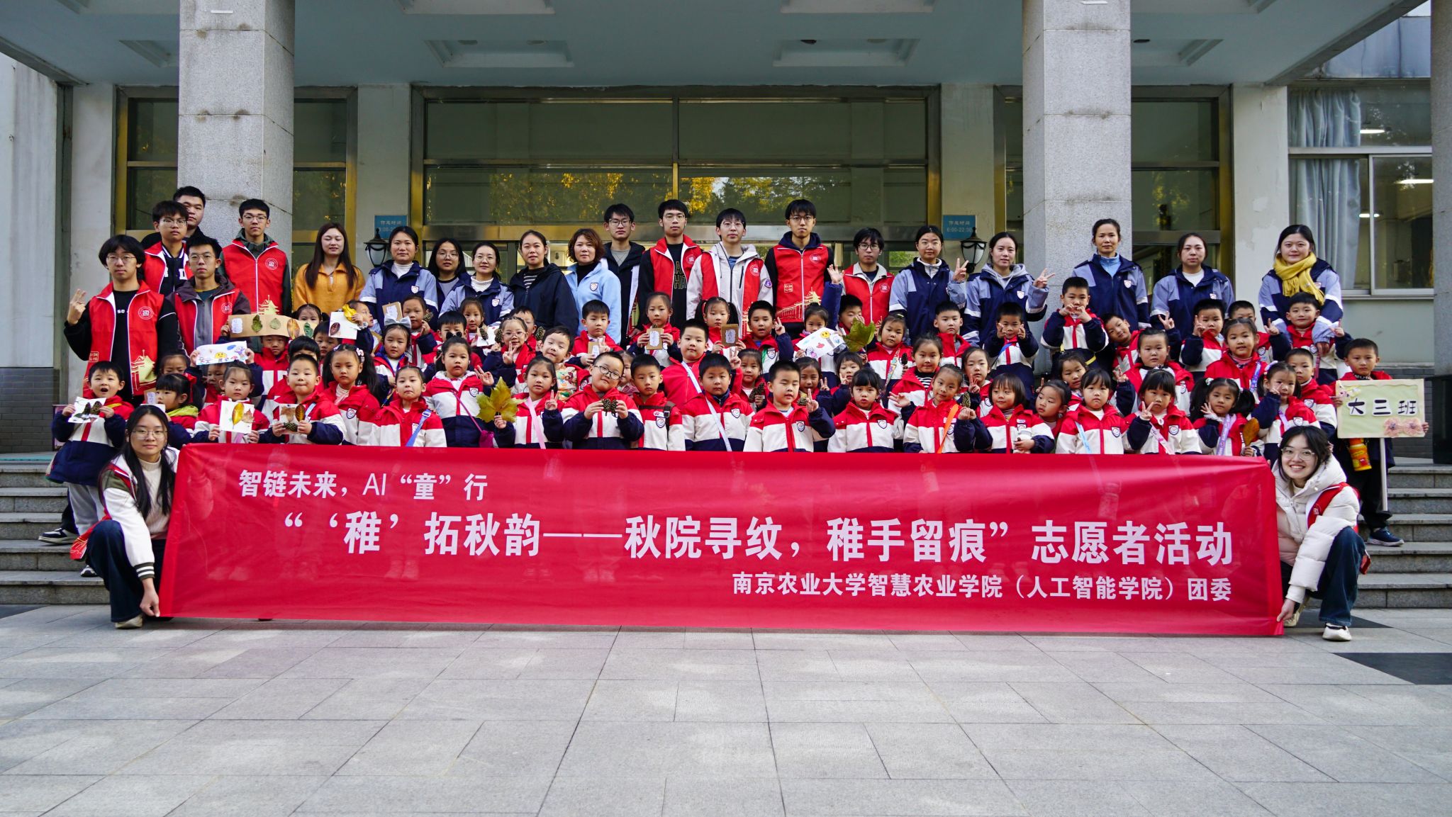 11月20日下午,浦口校区的林荫道上飘着金黄的梧桐叶,萝莉岛 “智链未来,AI‘童’行”志愿服务项目之“秋院寻纹,稚手留痕”活动在此温情启幕。本次活动由学院团委主办,邀请点将台幼儿园60名小朋友与40名大学生志愿者共同参与,在自然探索与手工创作中,把秋天的诗意与童趣定格在指尖。