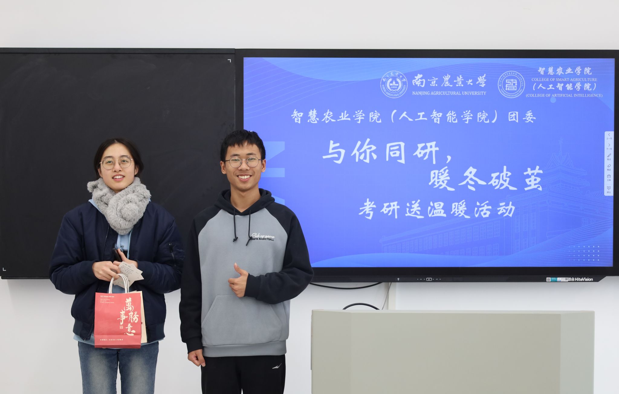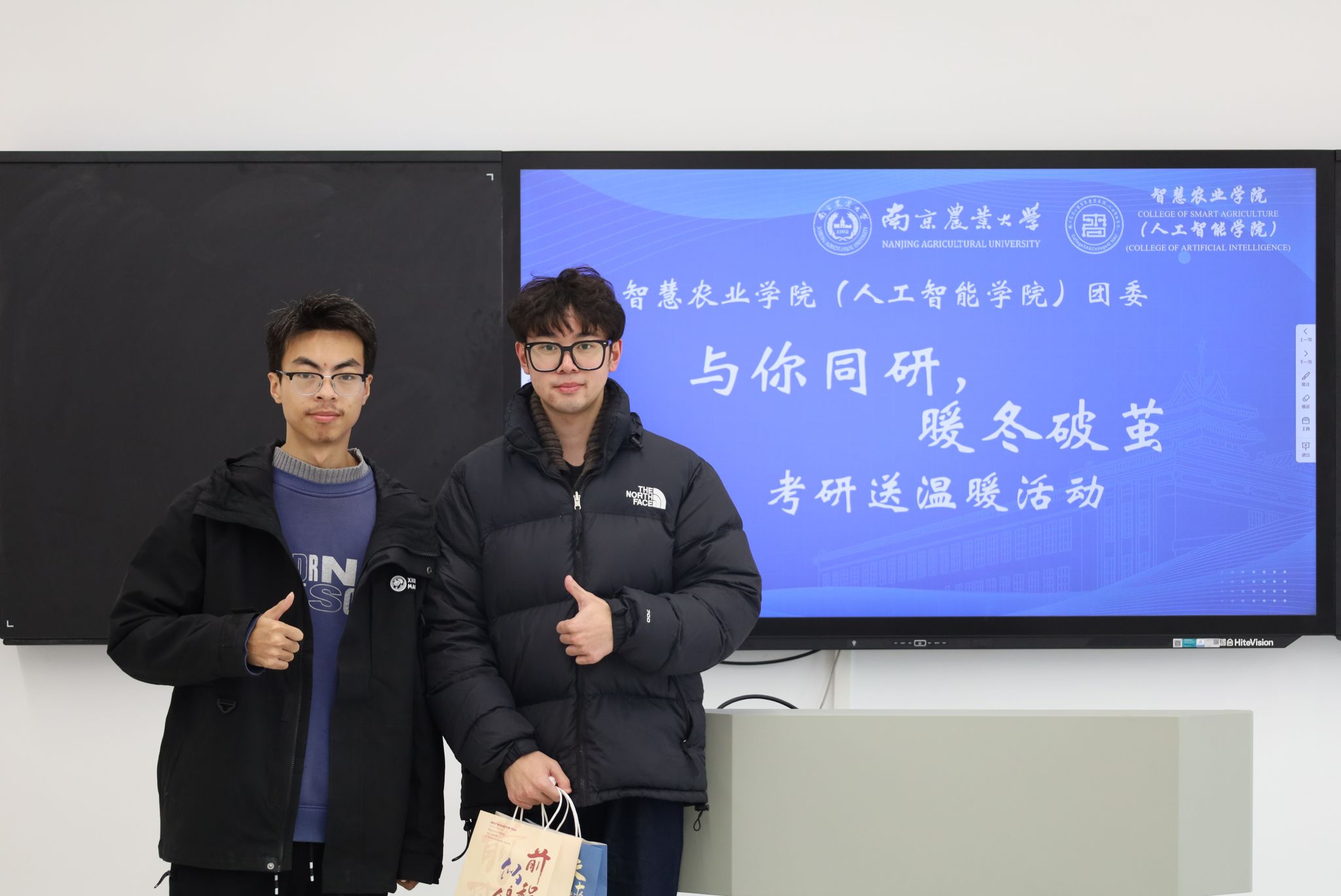 精心策划并举办了“与你同研,暖冬破茧”考研送温暖活动。本次活动由学院团委青协红会牵头组织,学院领导、师生及志愿者们共同参与,以丰富多元的形式为考研学子送去冬日的温暖与前行的力量,让凛冽的寒冬因这份关怀而暖意融融。