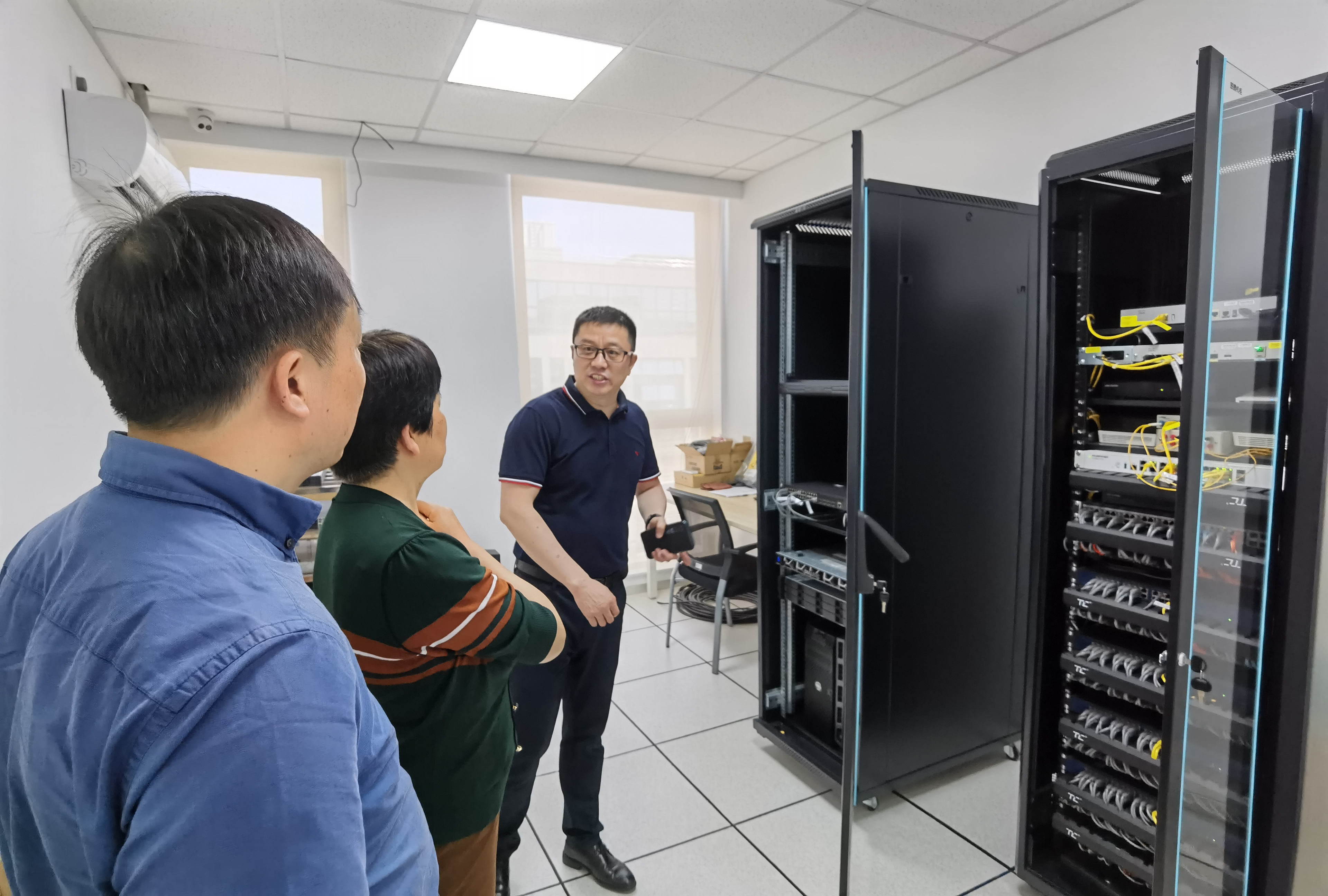 一行人,带领大家首先参观了解了公司的办公布局与环境。随后,他现场演示并详实介绍了部分产品特征及应用场景等内容。