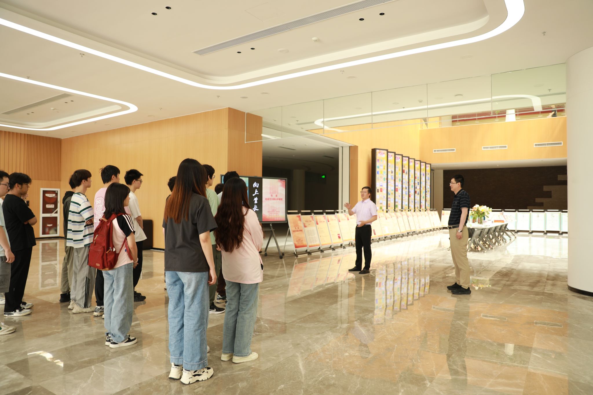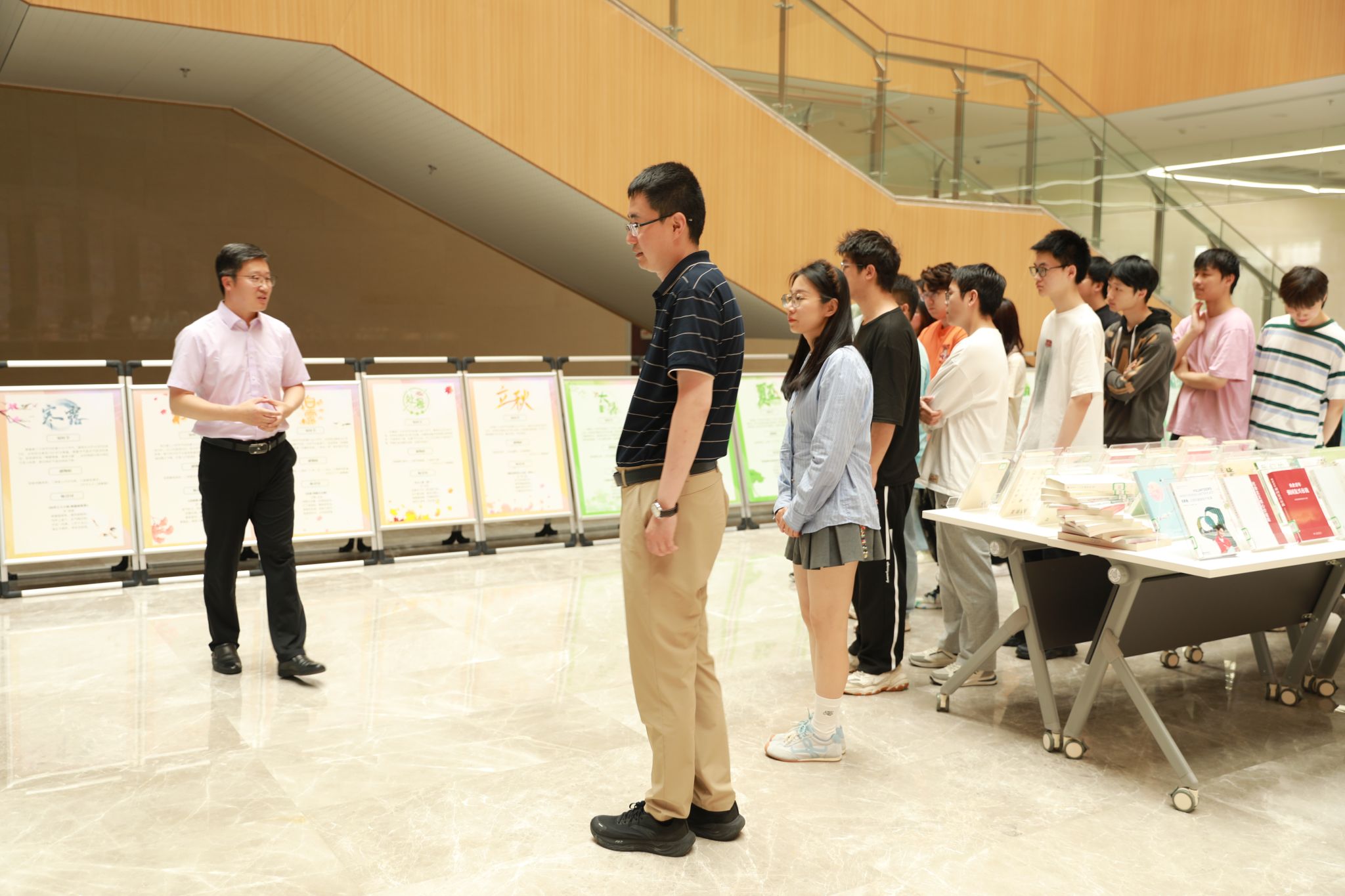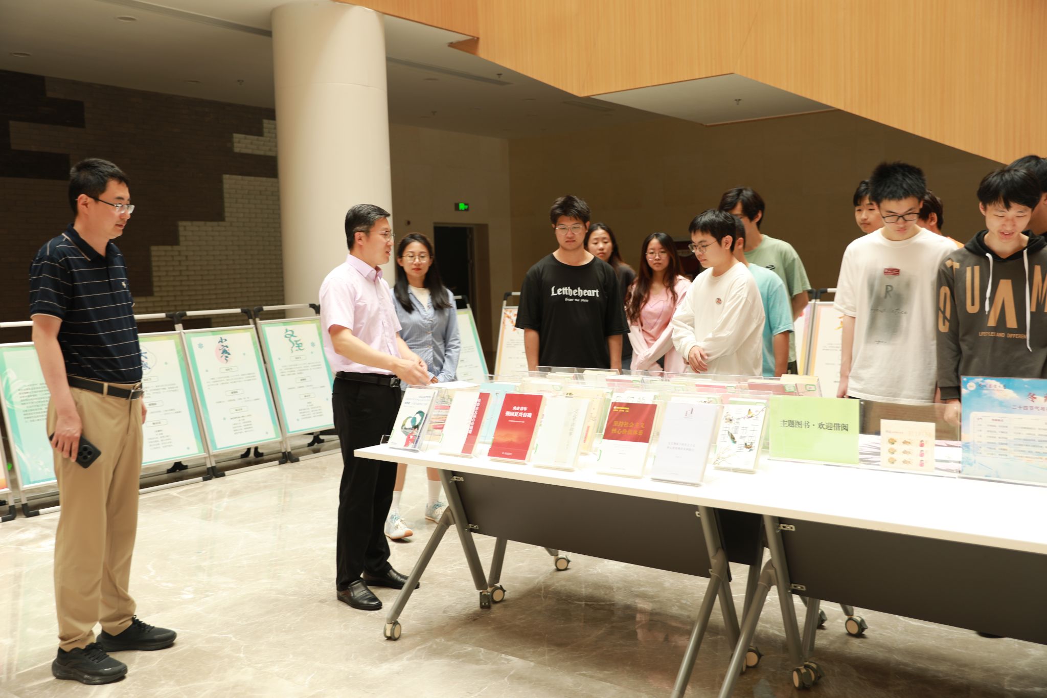 2025年5月28日,由金陵图书馆主办、萝莉岛 图书馆(文化遗产部)、科学院研究院、萝莉岛 、“‘智’愿灯塔”辅导员工作室联手打造的“向上生长”主题展览在滨江图书馆一楼正式开展。萝莉岛 党委副书记吕一雷,图书馆(文化遗产部)参考咨询部主任胡以涛,萝莉岛 本科生辅导员魏宇宁携20余名学生参展。本次展览融合“悦读社会主义核心价值观”与“二十四节气文化”两大主题,通过多元展陈形式,带领观众领略传统文化与时代精神的交织辉映,展览将持续至6月20日。