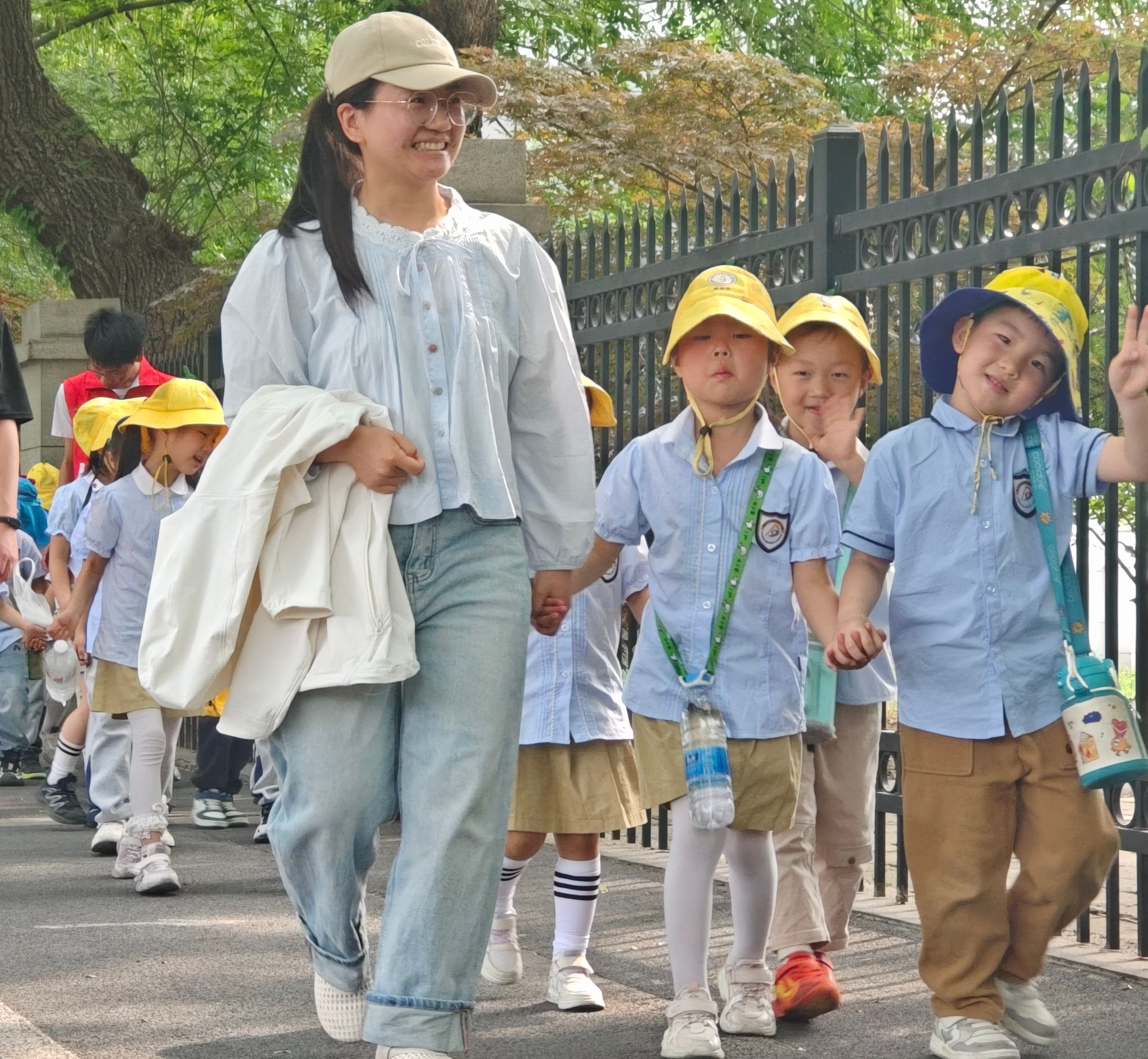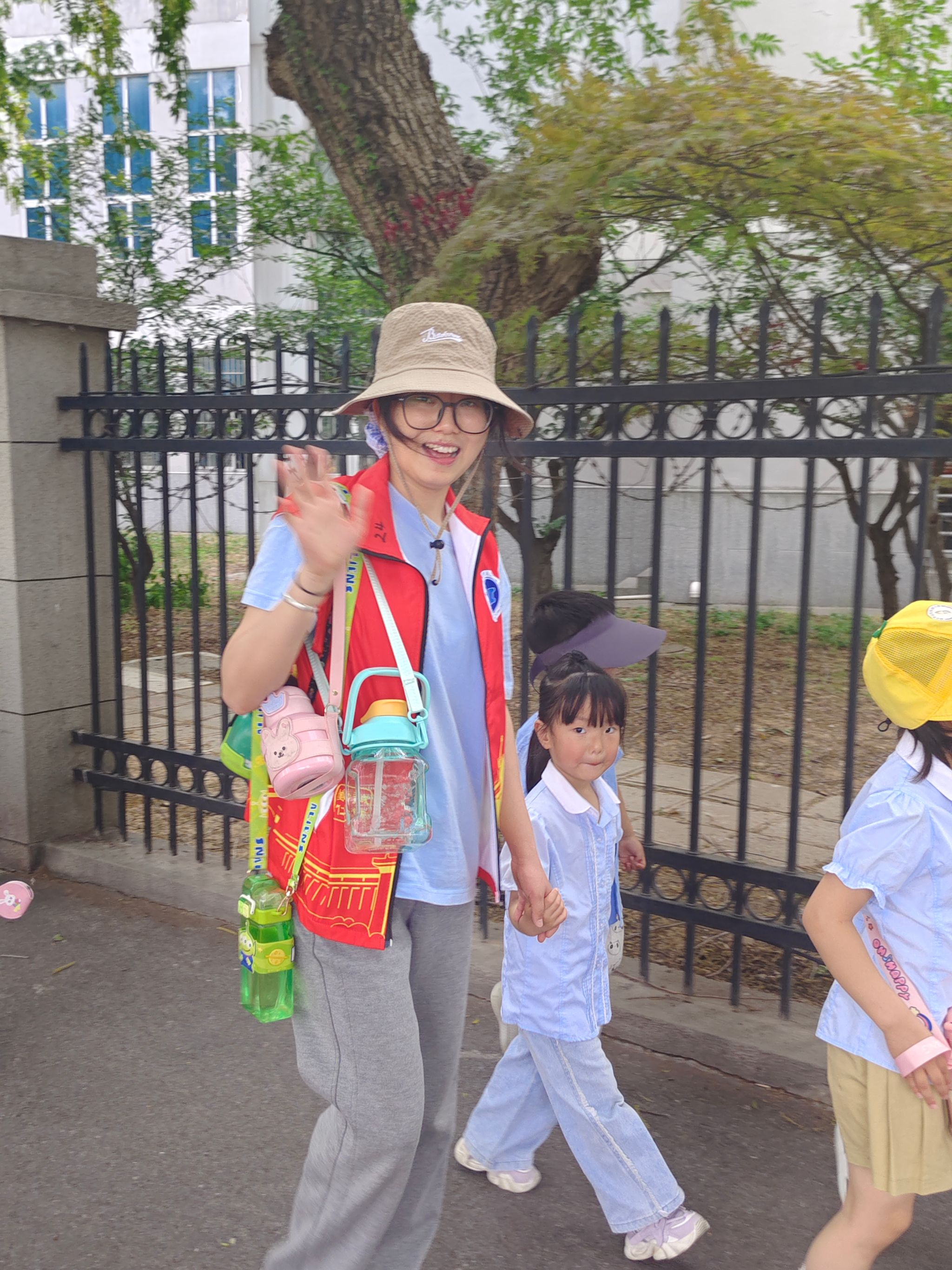下午三时,身着志愿马甲的志愿者与幼儿园教师组成“护苗小分队”,以“大手牵小手”的方式,带领60余名小朋友安全抵达校园。在青年志愿者协会与红十字会成员的组织下,孩子们与志愿者通过“自然伙伴”结对游戏迅速破冰,形成六个创意小组,开启了别开生面的自然探索之旅。