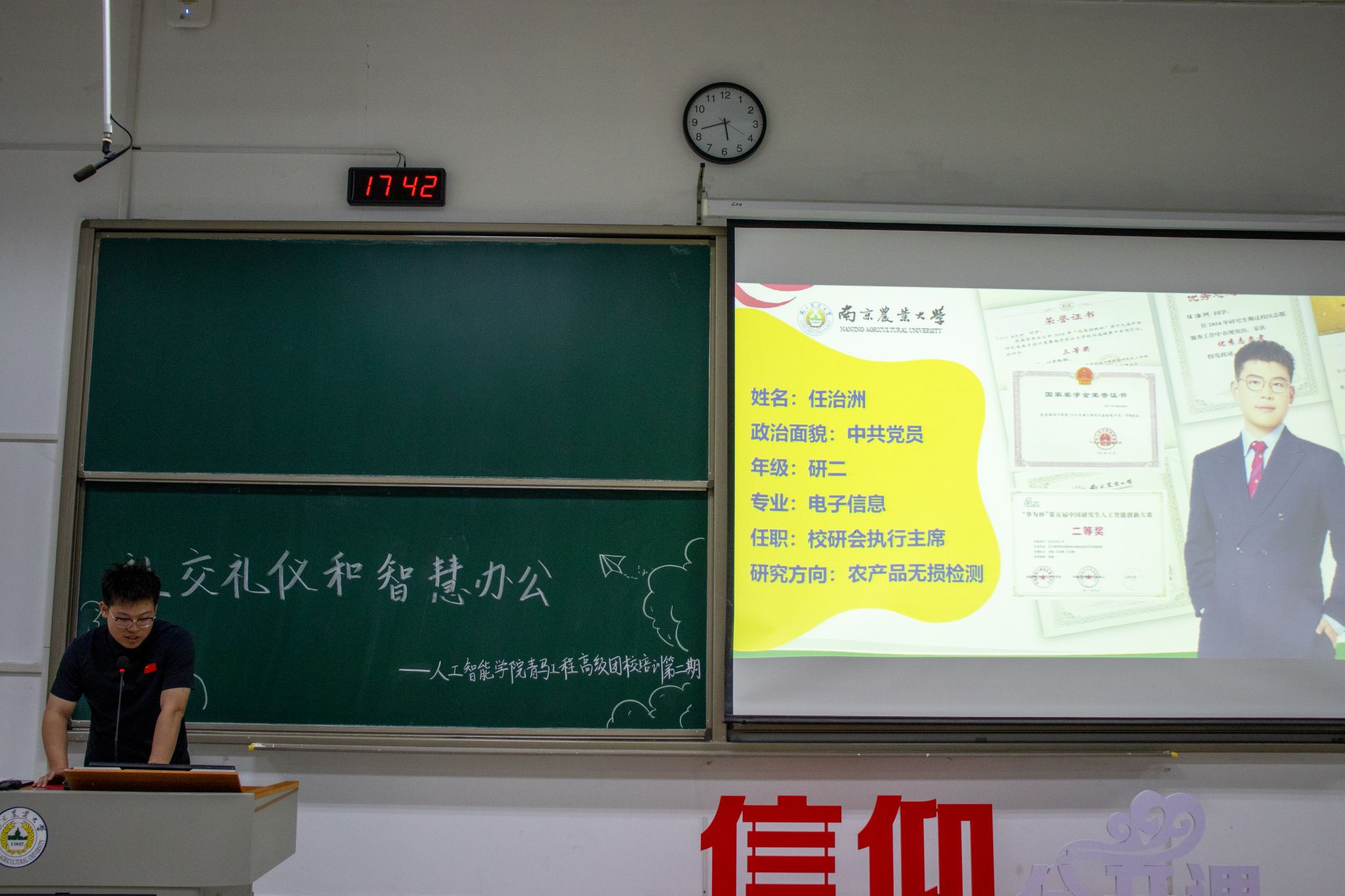 4月11日下午,萝莉岛 于博远楼C301举办信仰公开课系列高级团校培训之社交礼仪和智慧办公主题讲座。学院辅导员魏宇宁、2023级电子信息专业硕士研究生任治洲担任主讲,通过“职业软实力+数字硬技术”双轨教学模式,为全院学生组织成员带来一场立体化能力提升课。