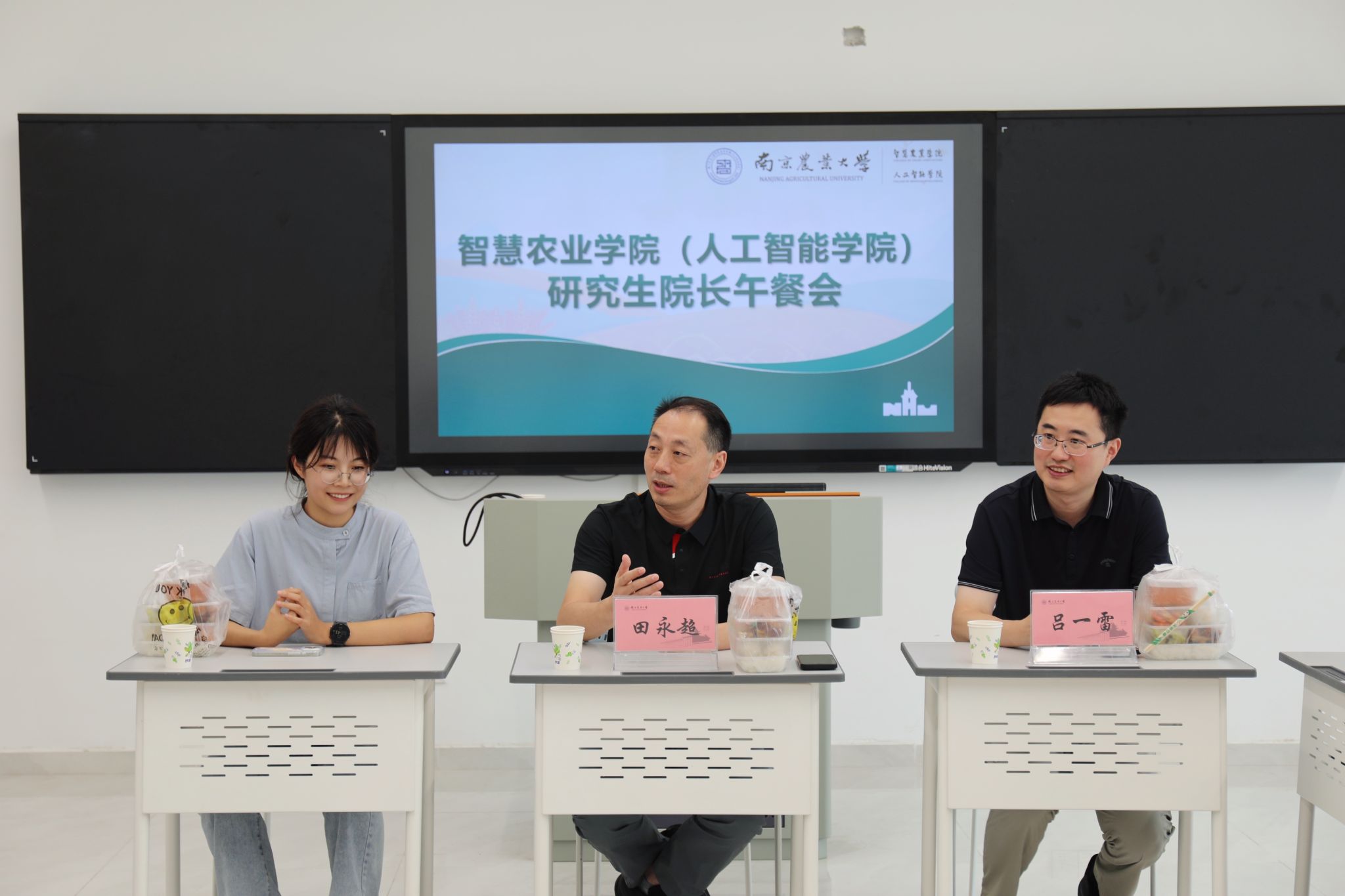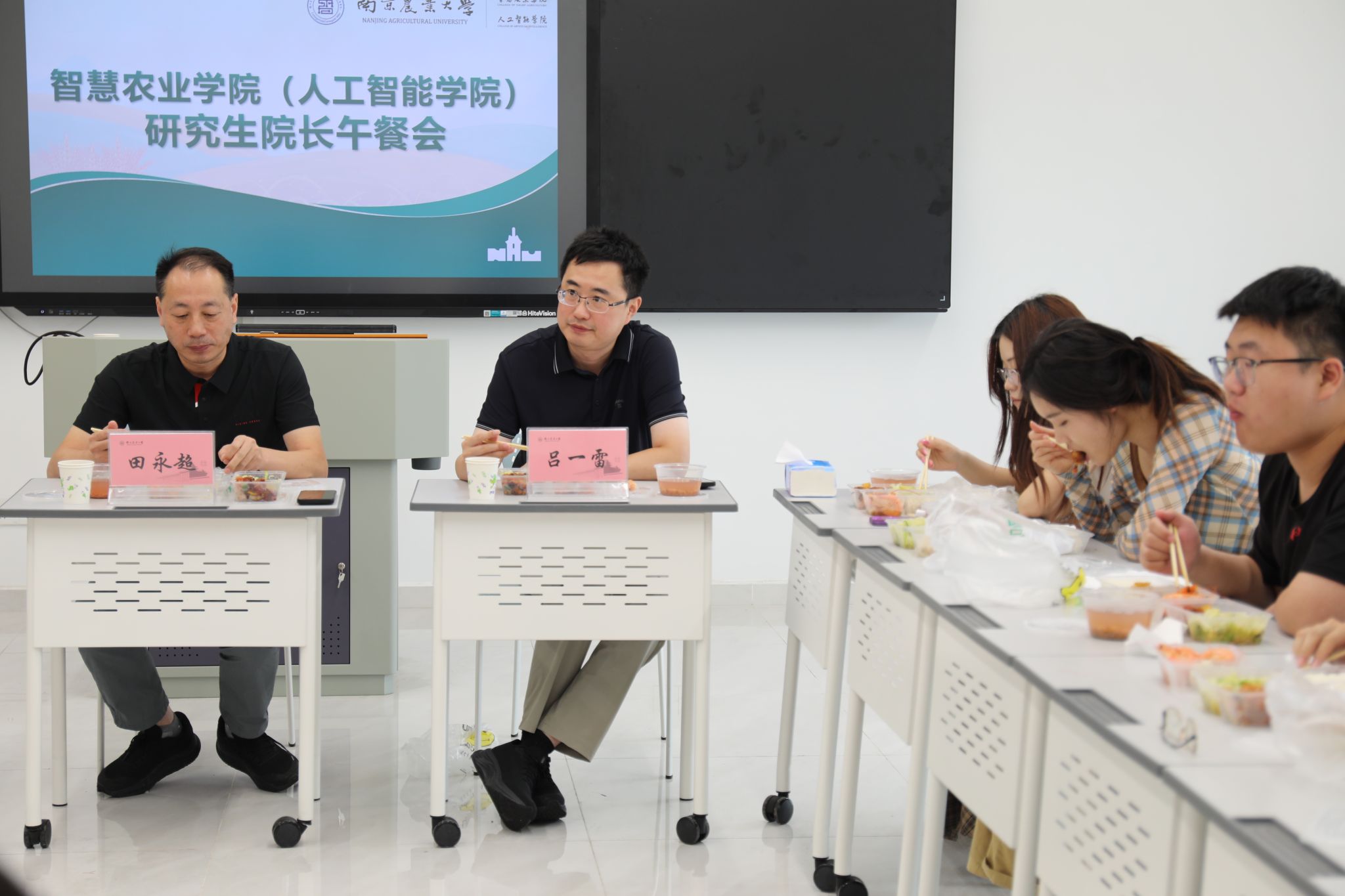 在滨江12号楼A769成功举办第二届研究生“院长午餐会”。学院常务副院长田永超、党委副书记吕一雷、辅导员艾娜与来自各专业的2025级硕博新生代表共进午餐,围绕学业发展、科研创新与校园生活等话题展开深入交流。