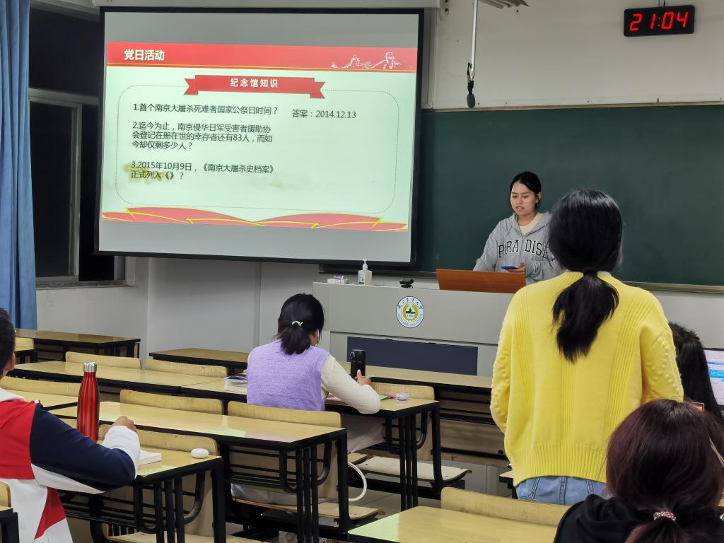支部以小组为单位,实地探寻南京红色教育基地。求雨山革命烈士纪念碑上“革命烈士永垂不朽”几个大字展现了革命烈士们的伟大和共产主义事业的艰辛;雨花台烈士陵园的每一寸土地,镌刻着革命先驱的一腔不屈热血;南京大屠杀遇难同胞纪念馆铭刻了中国人民集体的记忆,那是来自于血脉中的屈辱历史,不能忘、不会忘、不敢忘;南京工运纪念馆诉说着作为一名共产党员应该具备的艰苦奋斗、不屈抗争的态度。参观活动使得支部党员明白新时代的共产党人要肩扛国家责任,为建成新时代社会主义现代化国家而奋斗。