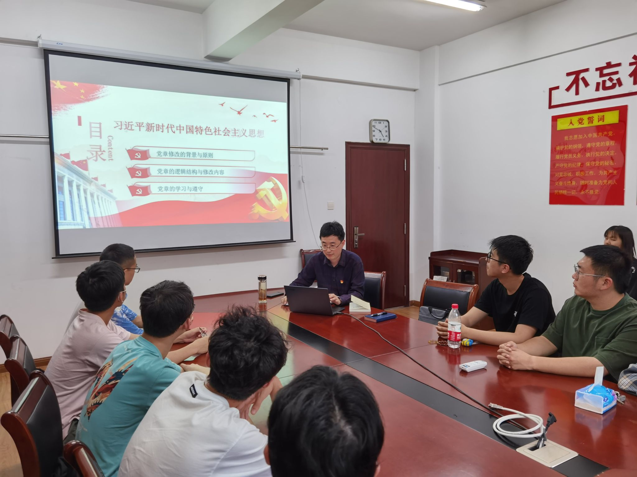 党委副书记吕一雷联系党支部开展了学习与遵守《中国共产党章程》专题党课。他以习近平新时代中国特色社会主义思想与党的二十大报告内容入题,阐明了此次党章修改的主要内容,增写了党的初心使命、党的百年奋斗重大成就和历史经验的内容,写入了全面建设社会主义现代化国家、以中国式现代化全面推进中华民族伟大复兴的奋斗目标,充实了“五位一体”总体布局的战略部署,号召支部每位党员同志要进一步深入学习党章、遵守党章,增强党的意识,严明纪律规矩,加强党性修养,认真履职,担当作为,以更高的标准要求自己,积极发挥模范带头作用,切实把贯彻党章落到实处。