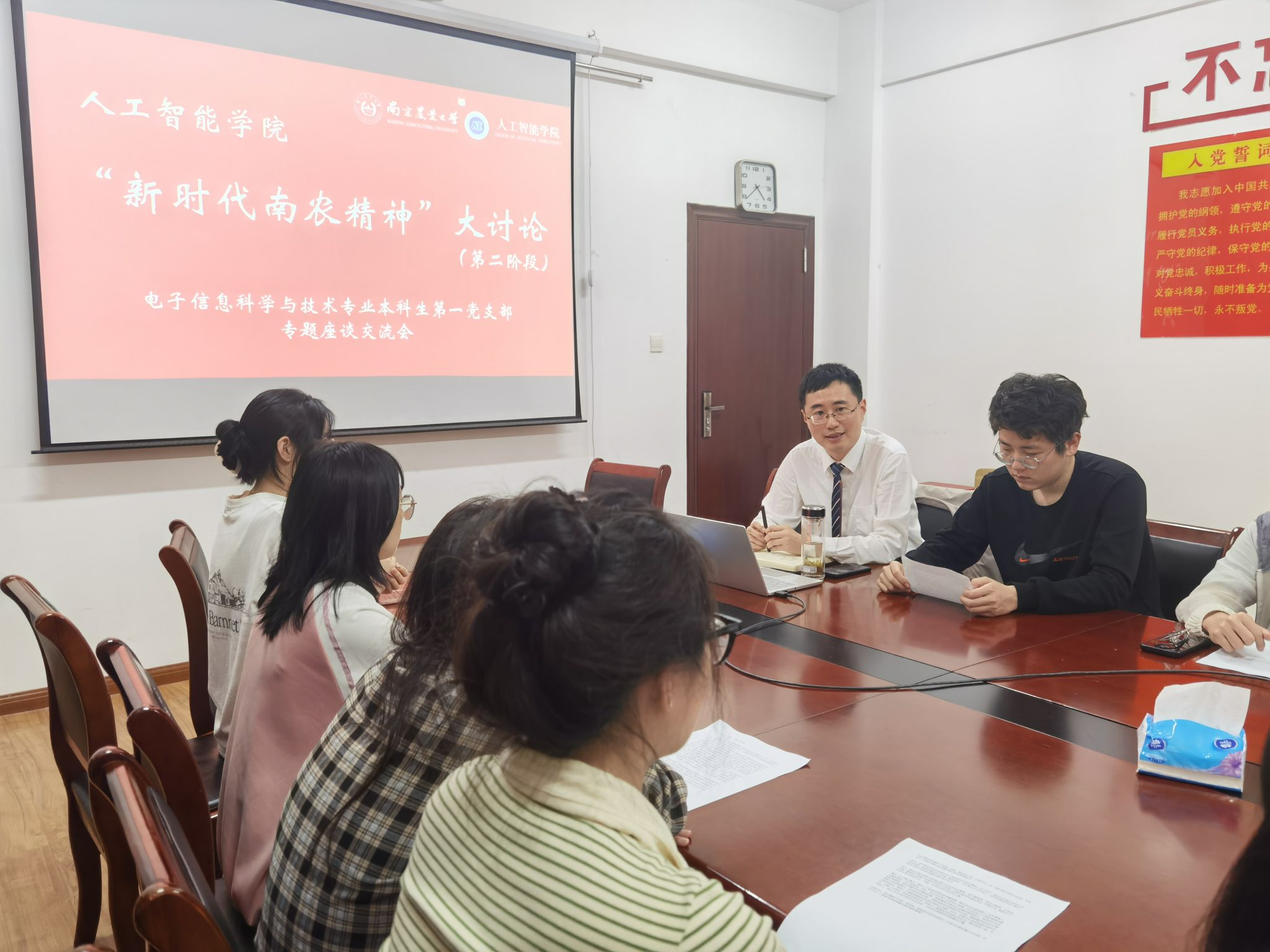 最后,吕一雷充分肯定了本支部关于“新时代南农精神”大讨论活动第二阶段专题研讨的成效;同时,他对支部的建设、支部党员的成长提出细致要求并给予美好期许。