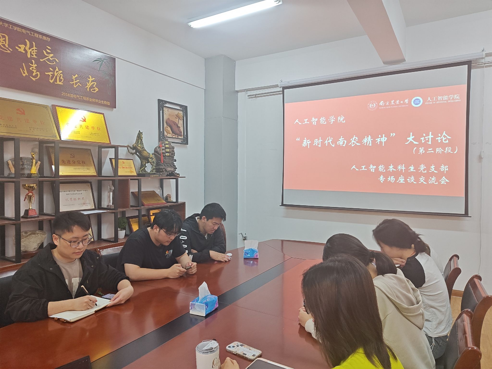 4月25日中午,人工智能本科生党支部于育贤楼B311开展“新时代南农精神”第二阶段研讨活动。人工智能本科生党支部师生党员参加研讨,会议由支部书记李洪主持。