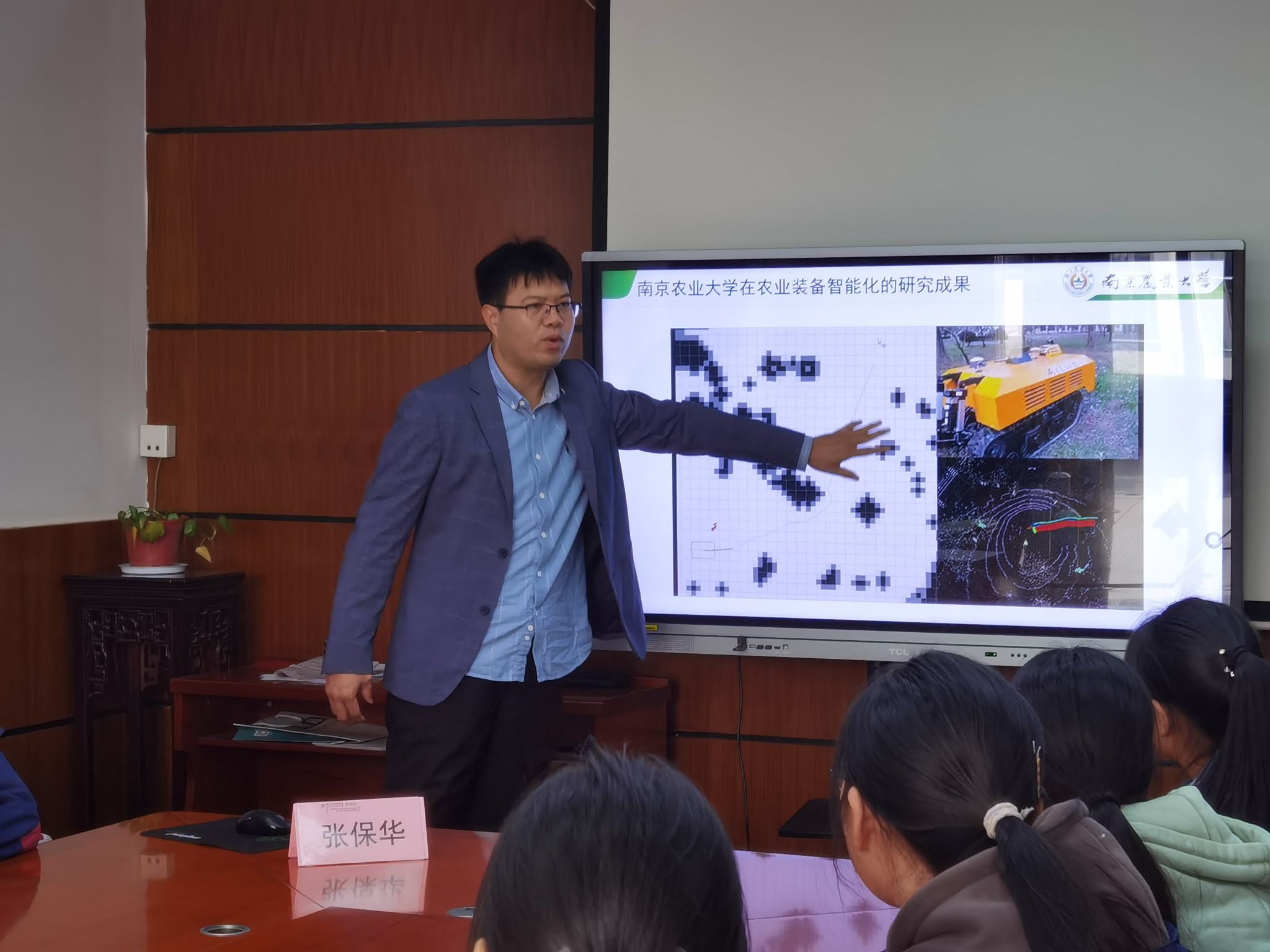 在相关方向的研究成果,并引领同学们预见人工智能在乡村振兴战略实施推进过程中的广阔应用前景,带领学生们领略人工智能的魅力,为他们打开了一扇洞察农业科技创新前沿的窗户,激发学生对未来智慧农业发展方向的深度思考。讲座后,张保华与同学们就“人工智能赋能农业”等方面的问题进行了互动与交流。
