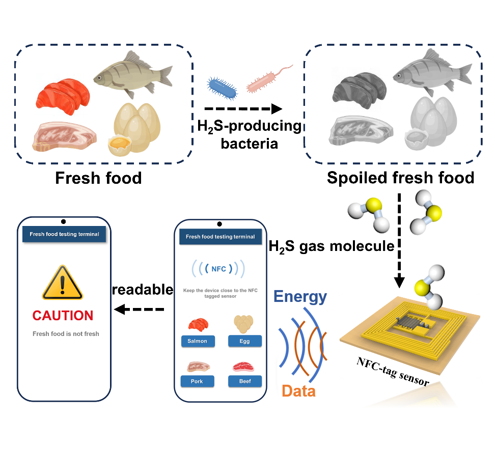赵国副教授团队研制了一种柔性、高灵敏、基于近场通信(NFC)的无线无源传感系统,可借助智能手机对生鲜食品的新鲜度进行实时评估